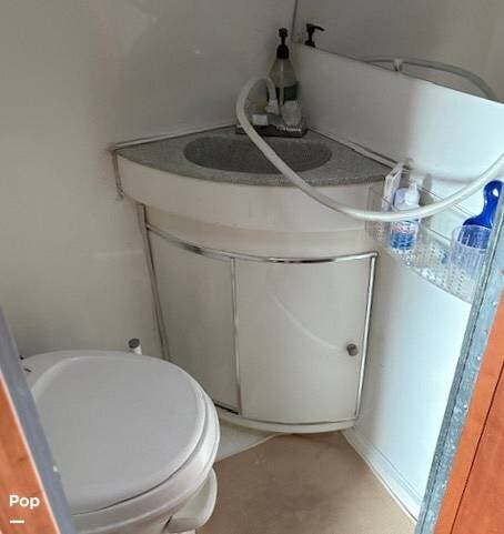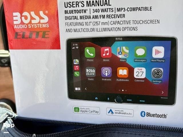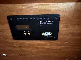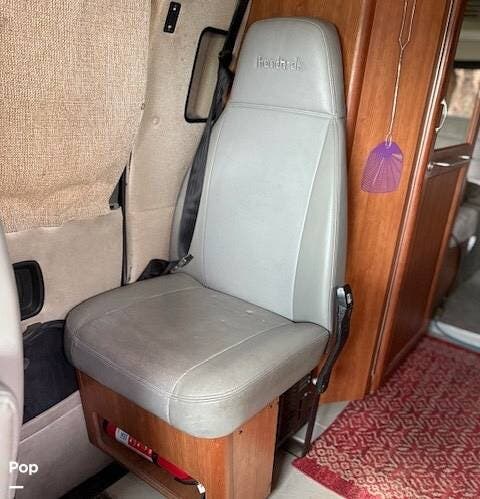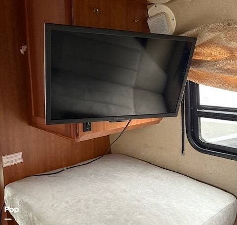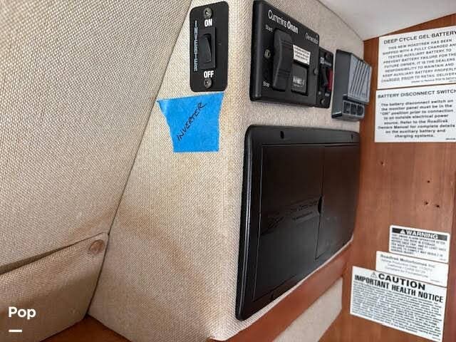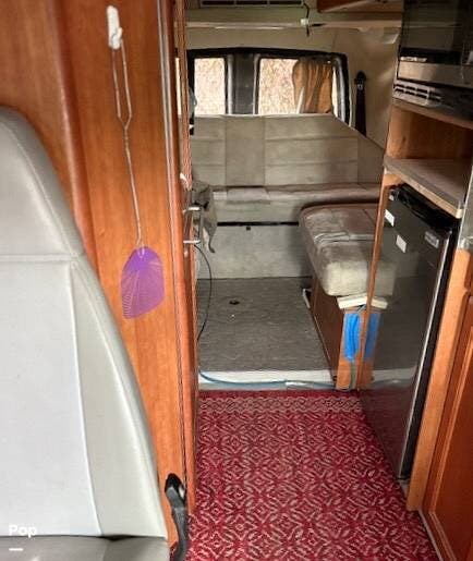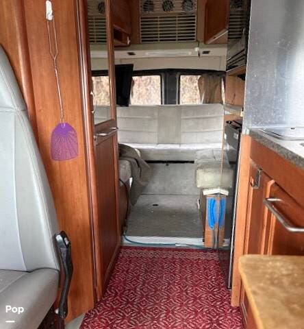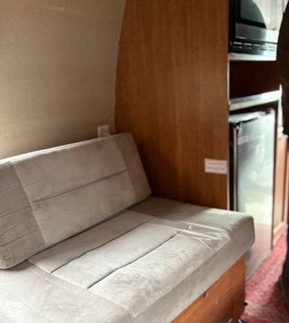 It features a roof mounted solar panel, a full wet bath, kitchen, swivel front seats, and a rear-powered sofa that can be easily converted into a sleeping area. The 3rd seat in this unit does not convert to the optional sleeping area that is shown to be available in the brochure. There's plenty of storage and even a 74" interior head height to help give this RV a larger, more open feeling.