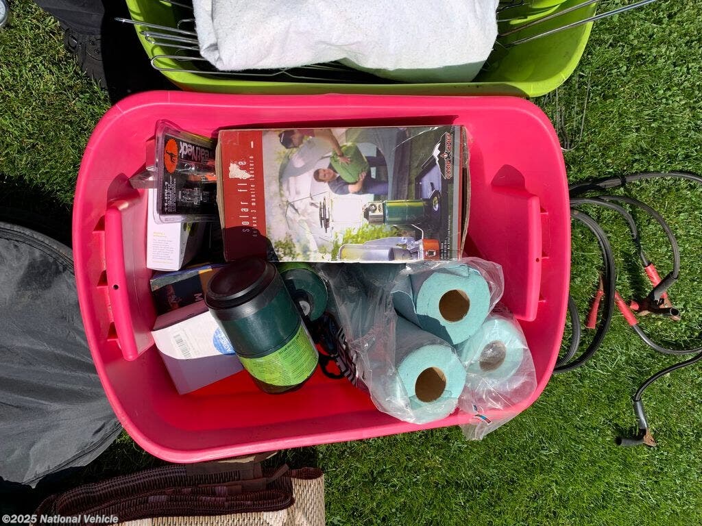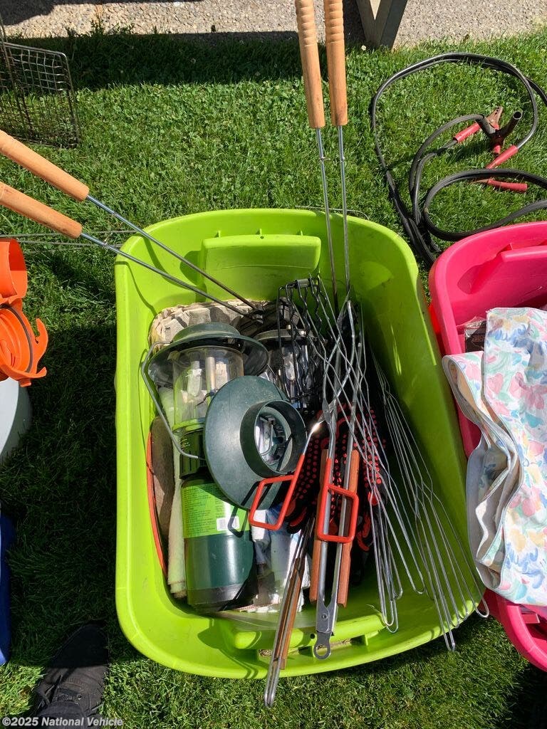 including lots of extras - colemen lantern, grill, fuses, wheel chalks, hoses, cords, pots, pans etc