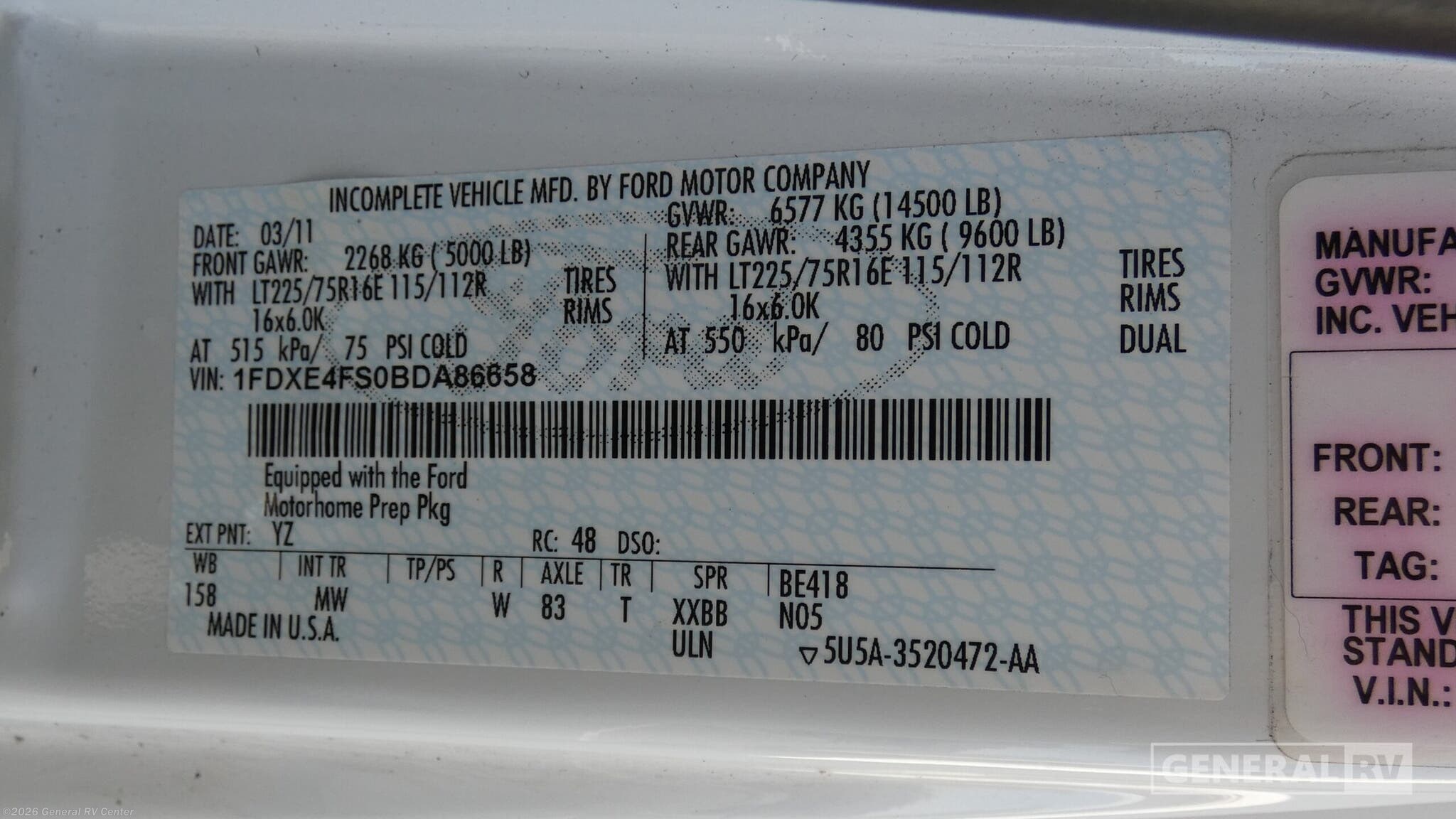 - VIN1FDXE4FS0BDA86658