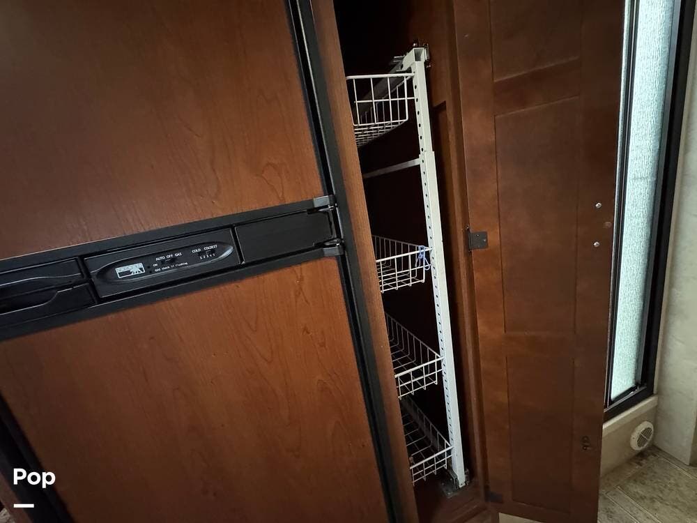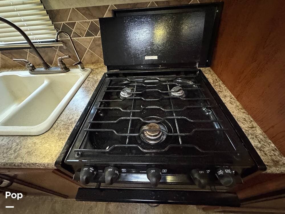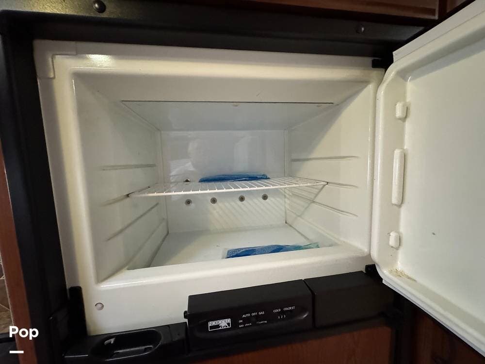 The well-appointed kitchen includes a refrigerator/freezer, microwave oven, three-burner range with oven, double kitchen sink, countertop extension, and a generous pantry -- ideal for longer trips.