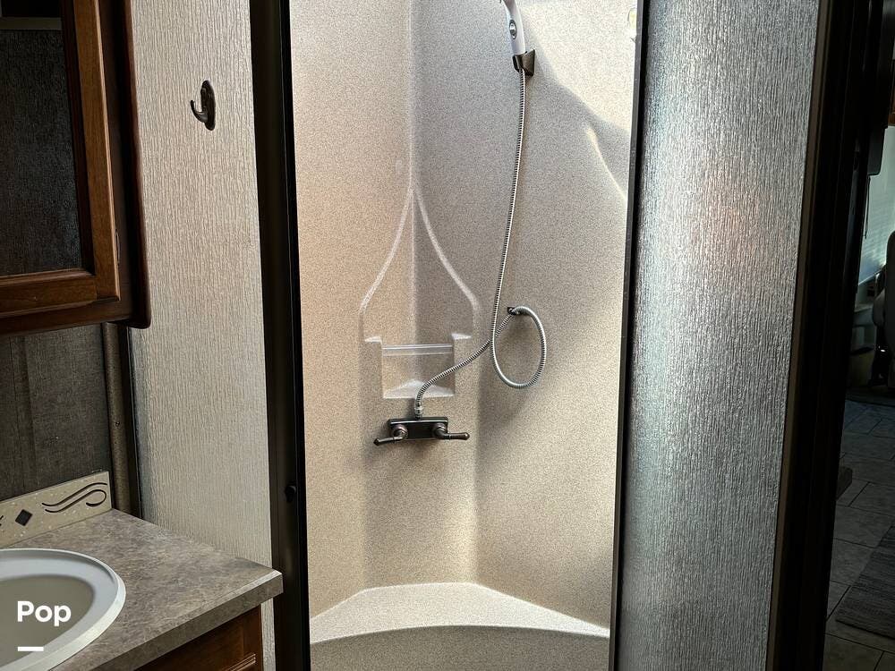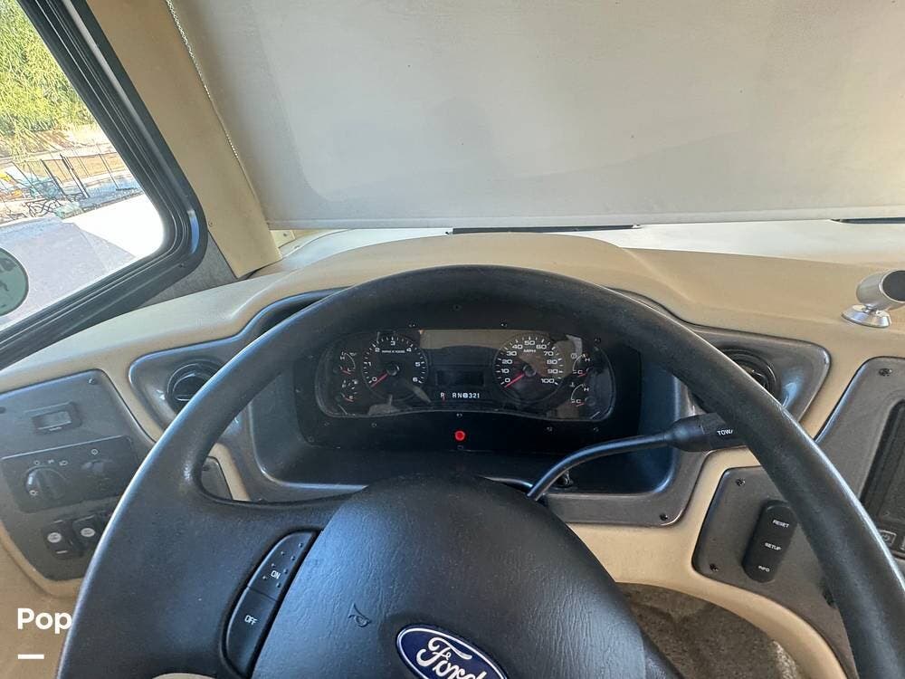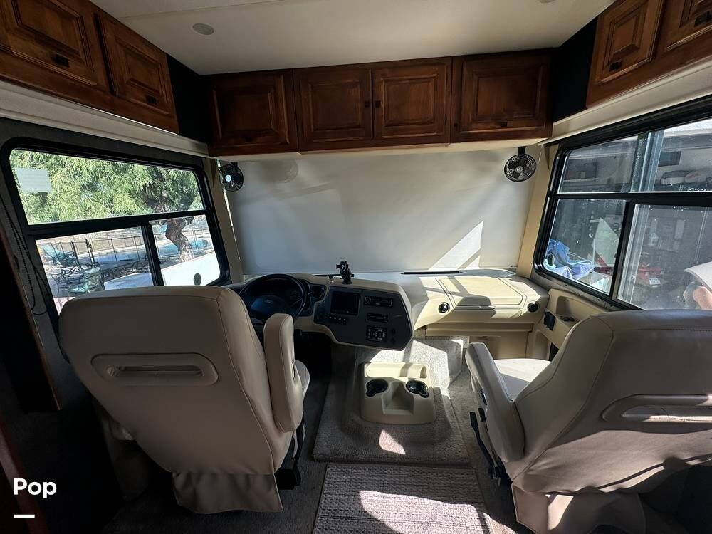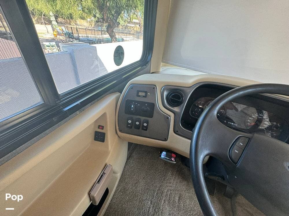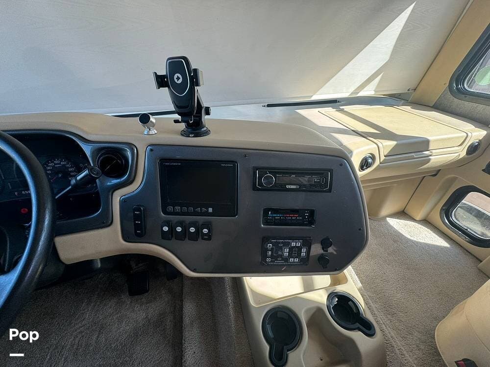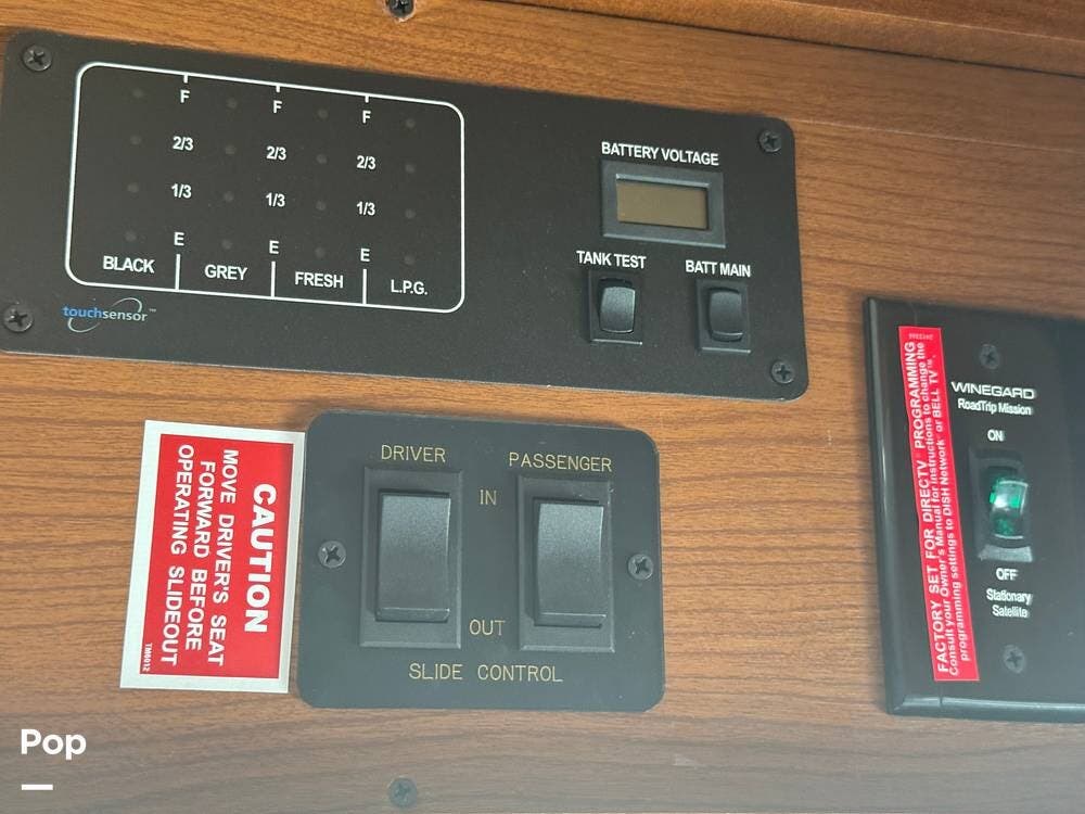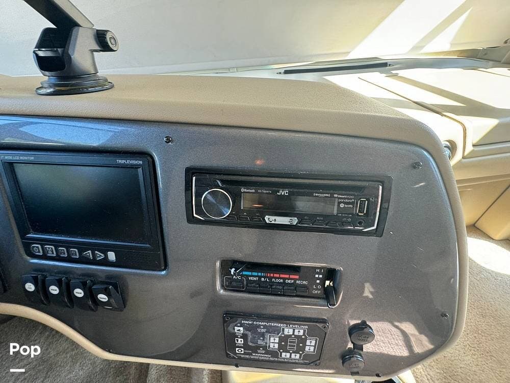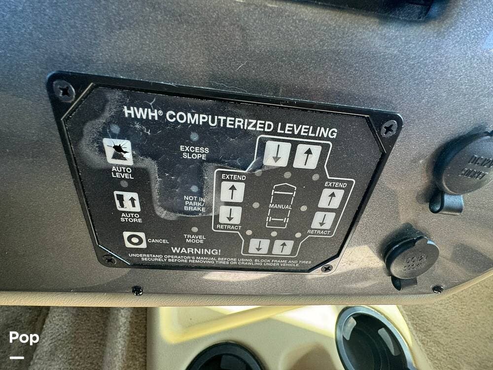 You'll find privacy blinds, driver and passenger fans, a color monitor for viewing the backup and side views, and controls for the auto-leveling system.