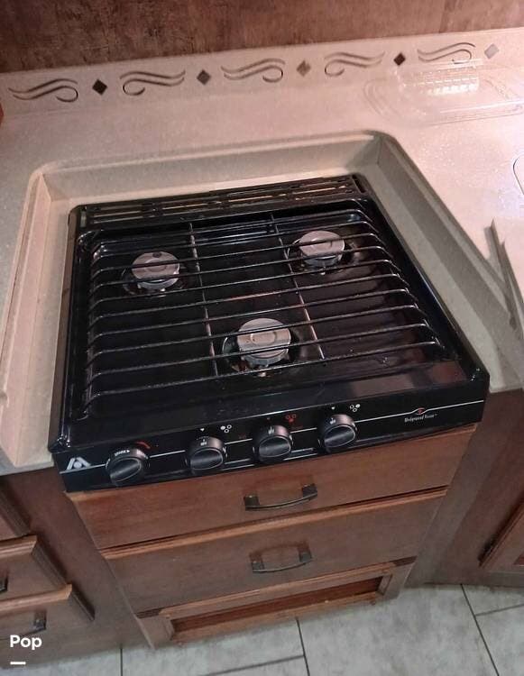The popular floor plan is designed with both comfort and functionality in mind, featuring a well-equipped galley kitchen with an 8-cubic-foot refrigerator, a cozy living and dining area, and sleeping accommodations that make travel feel like home.