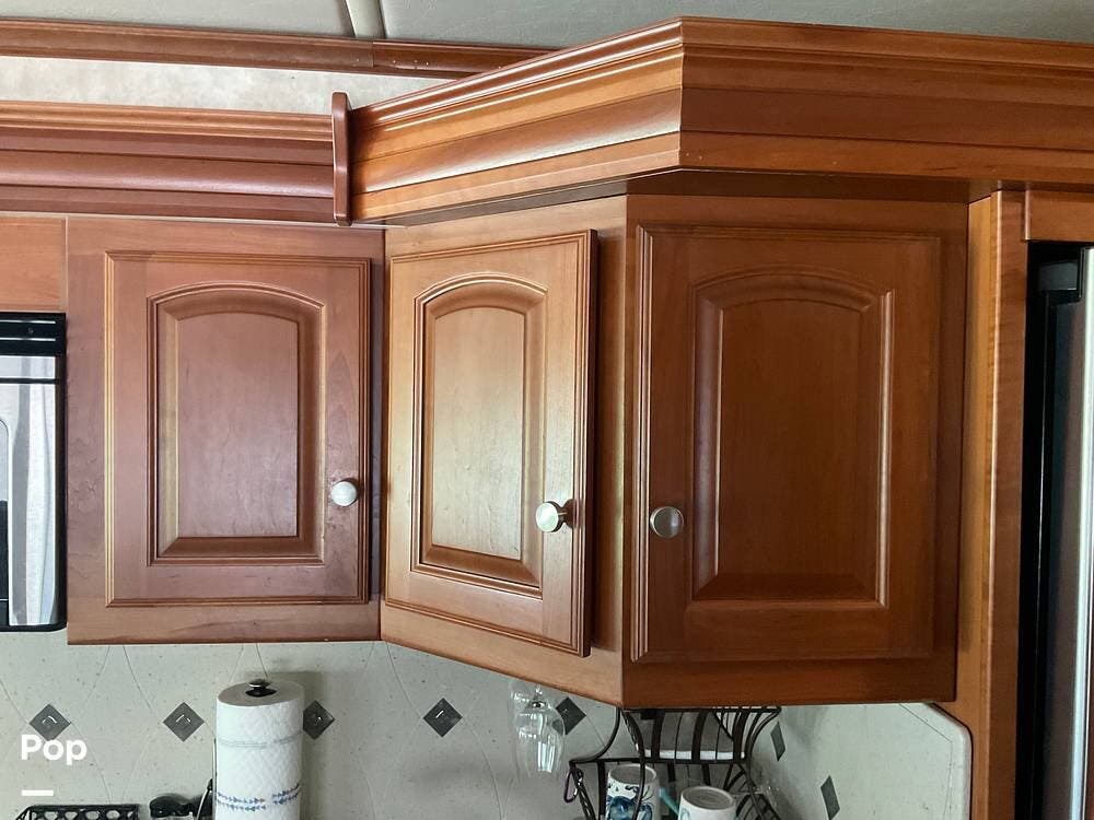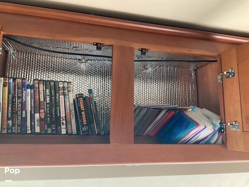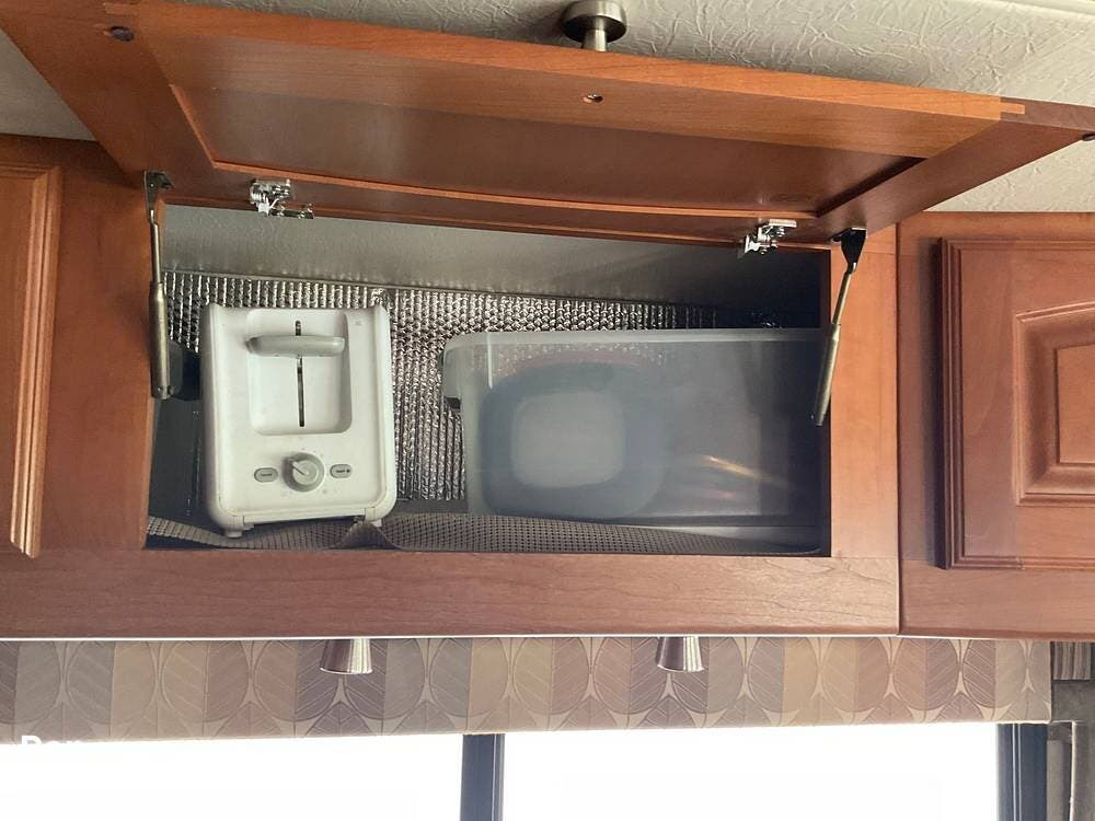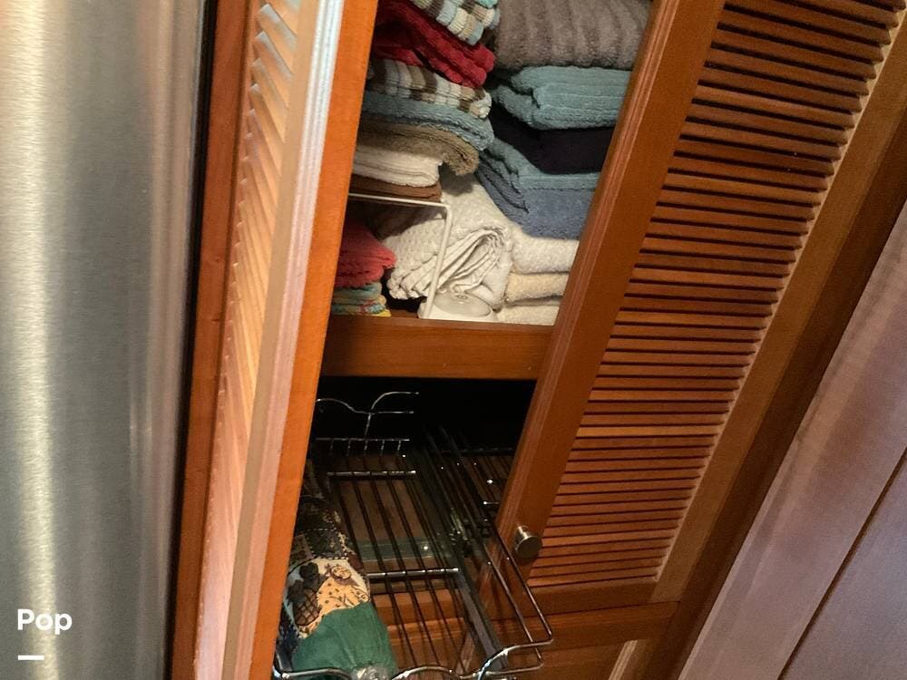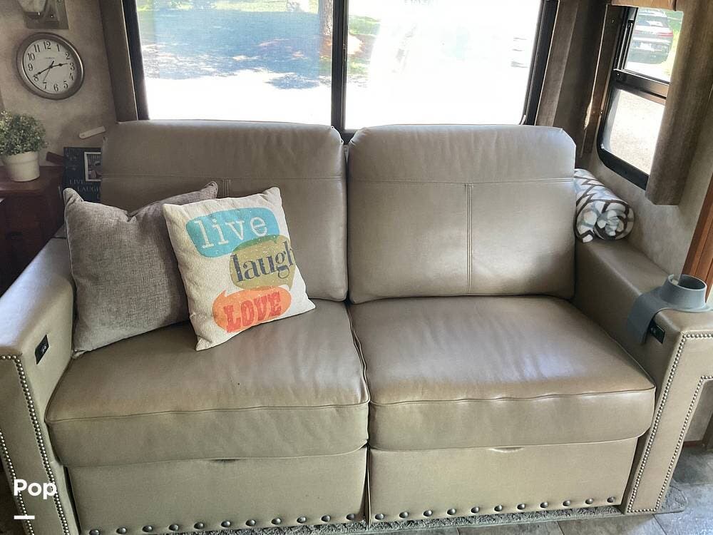 As you enter this well-appointed RV, you're immediately greeted by comfort and convenience. Two luxurious leather captain's chairs swivel to face the living area, creating a cozy and social space.