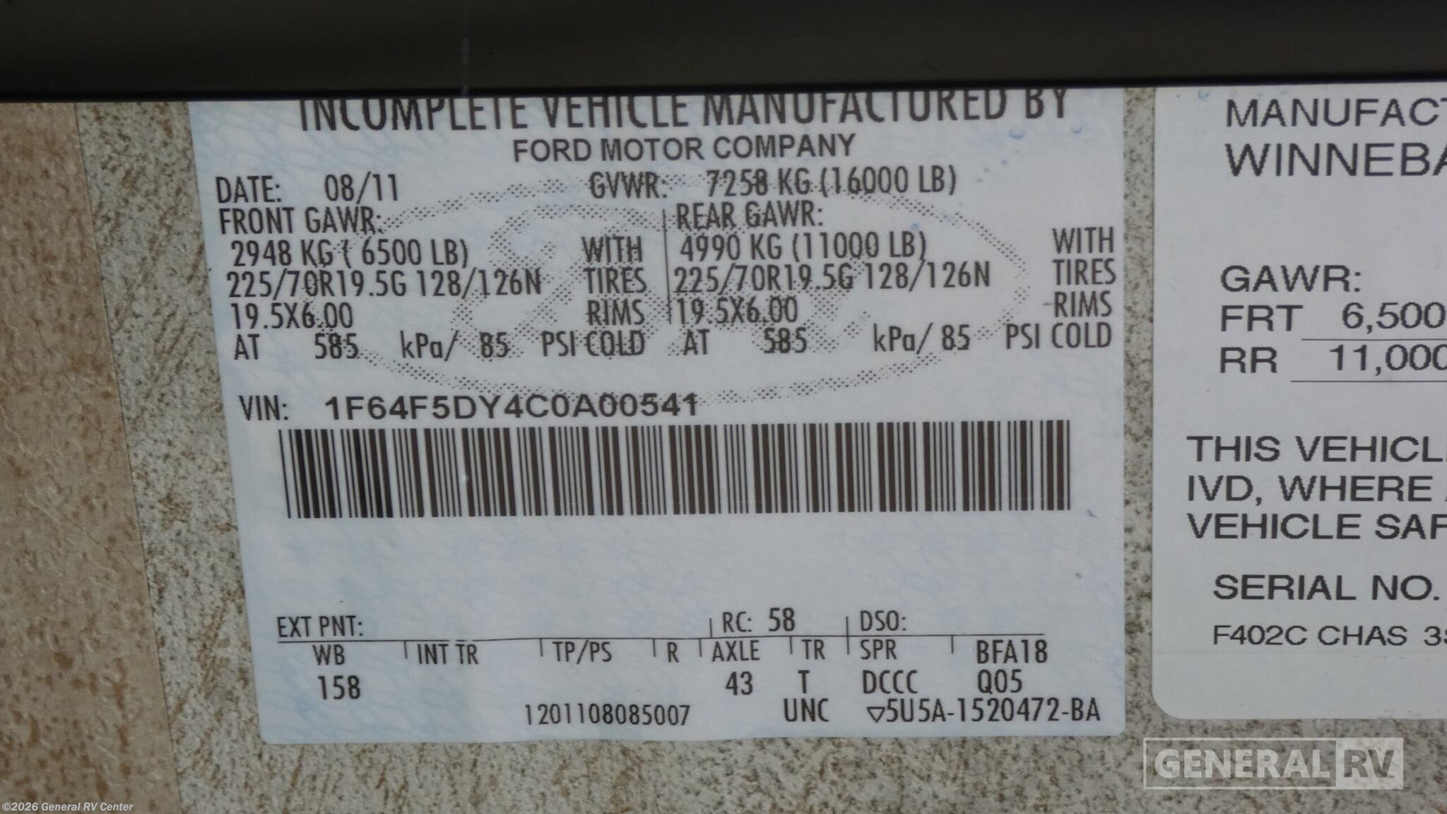 - VIN1F64F5DY4C0A00541