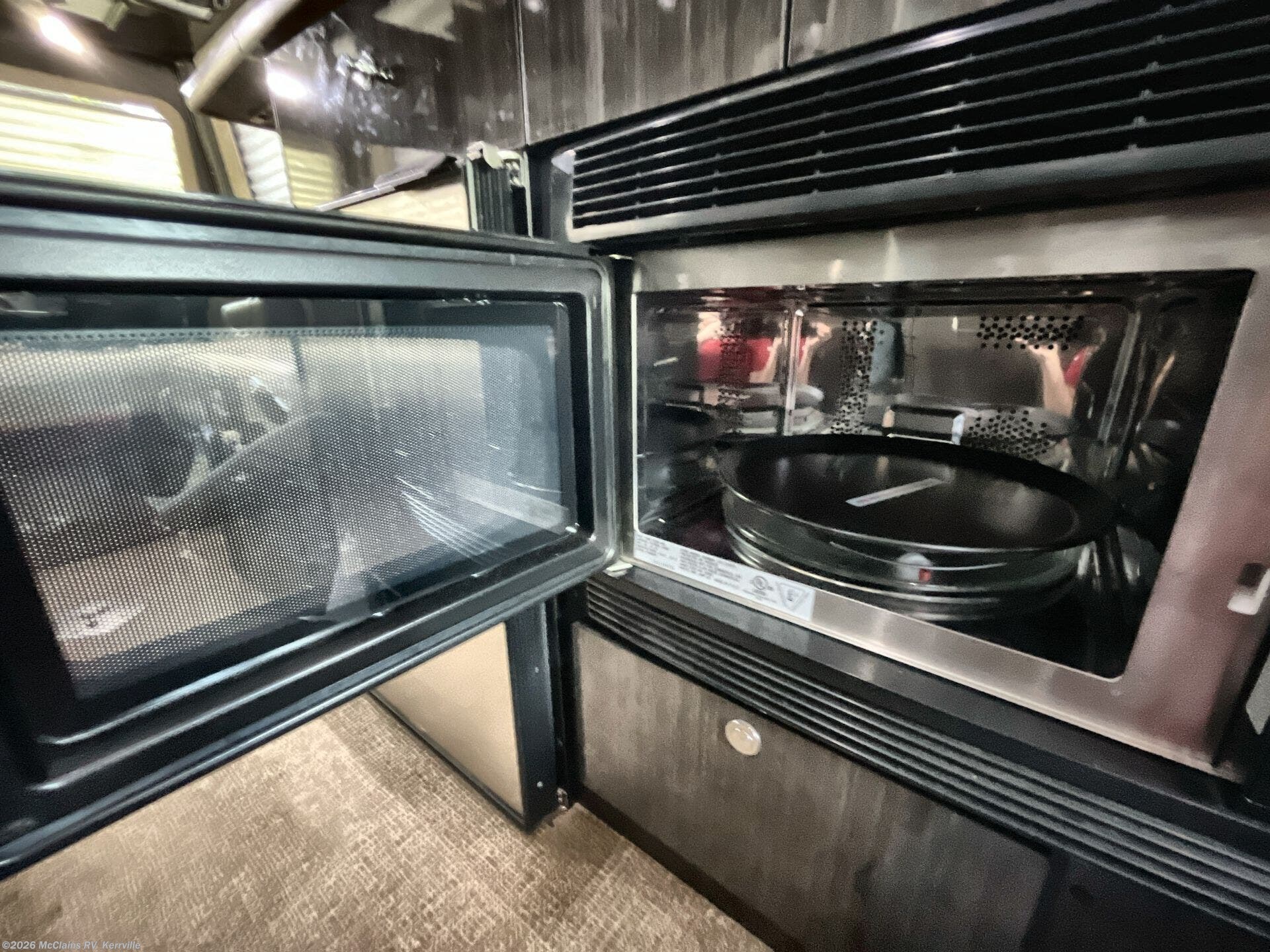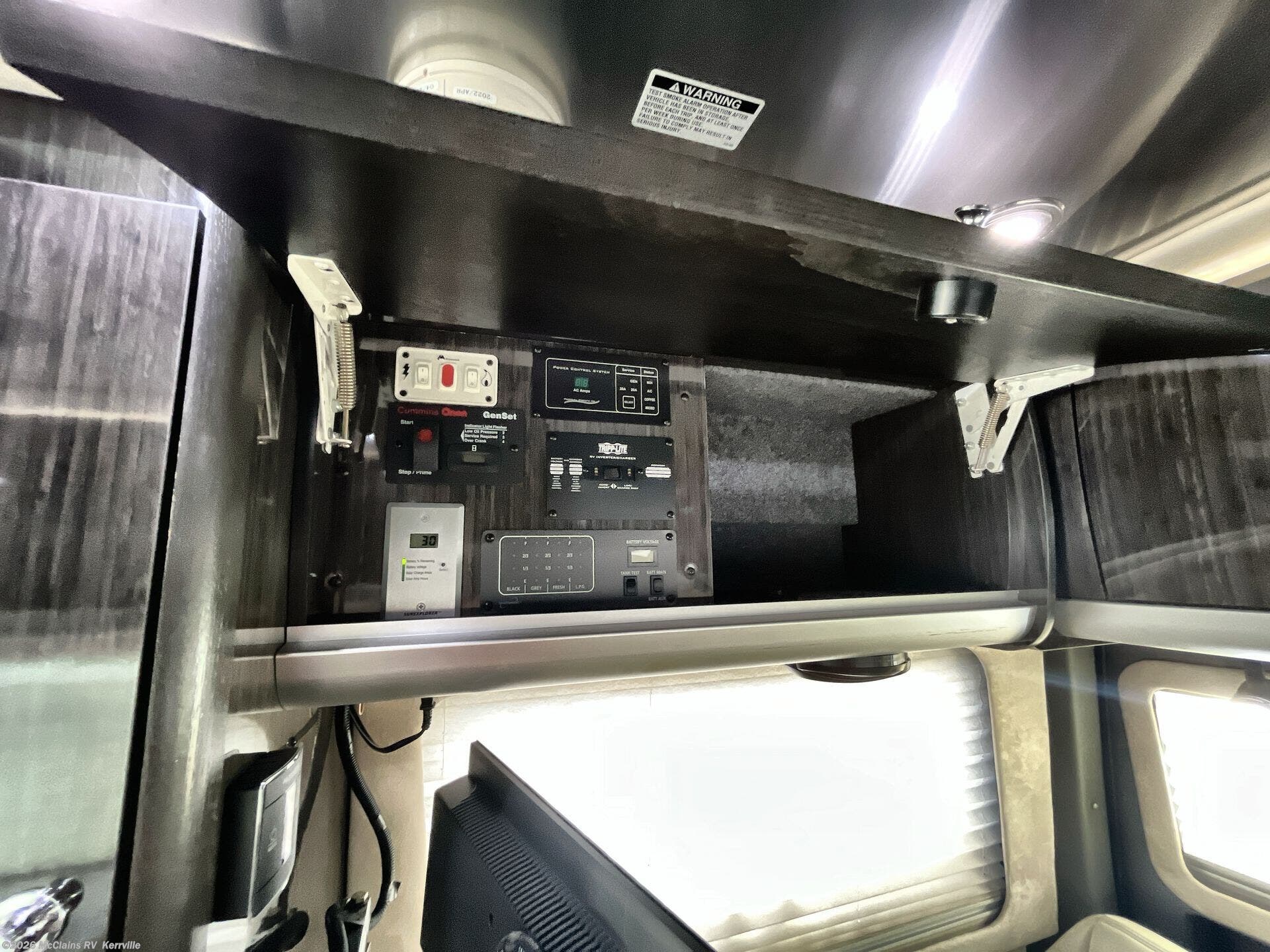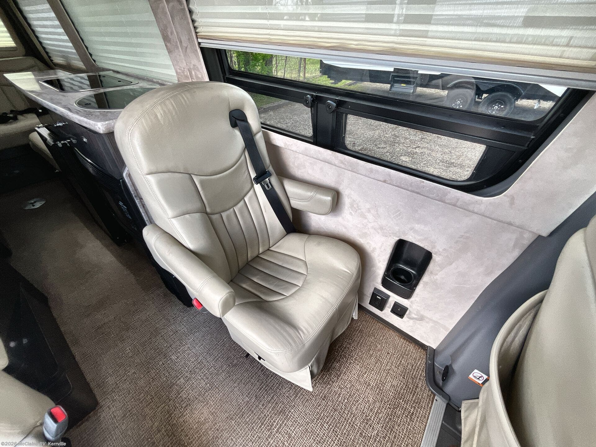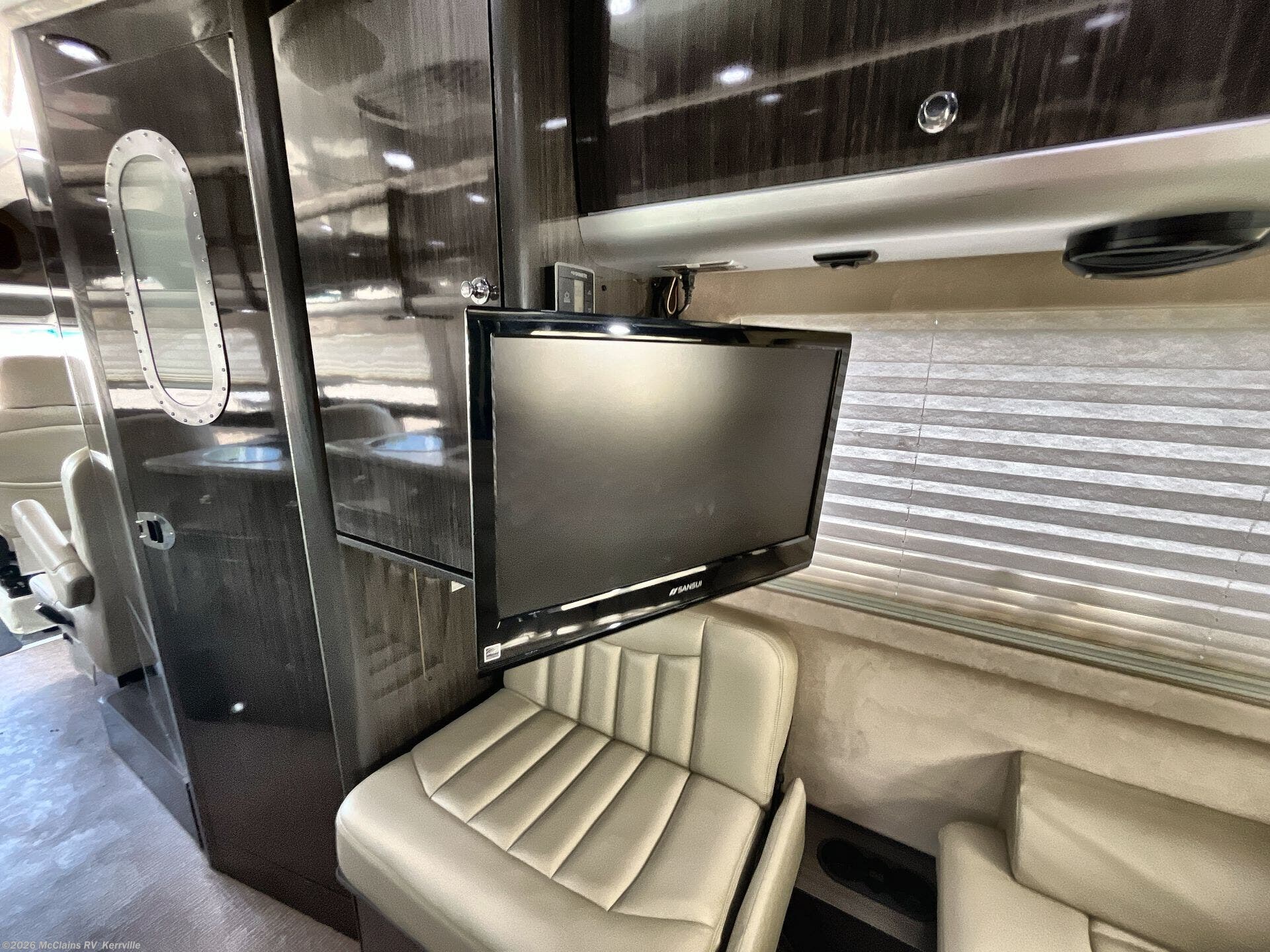 - Interior comforts: Furnaced heating, Microwave, Refrigerator, Stove top burner, Medicine cabinet, Shower, Toilet, Theater seating, TV, Stereo system