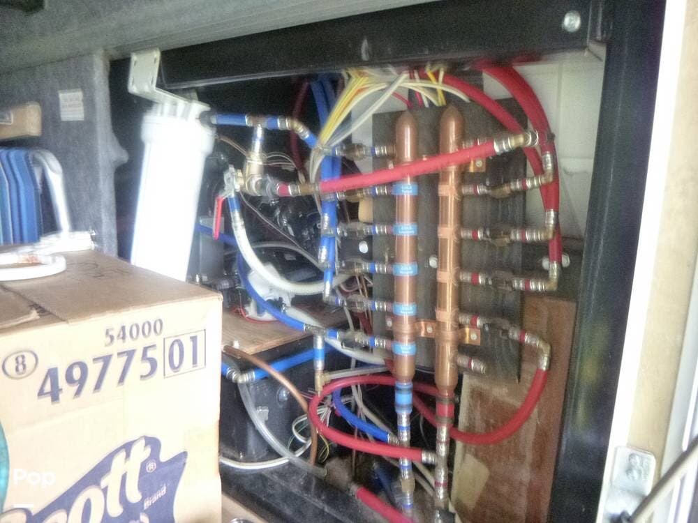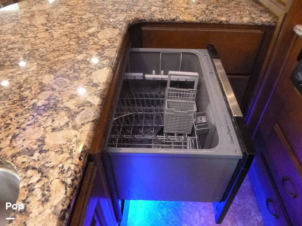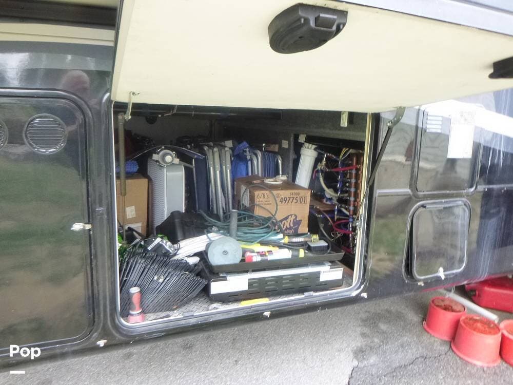 Equally impressive are the practical features that support extended stays, including a 100-gallon fresh water tank, 75-gallon grey tank, and 50-gallon black tank, giving you the capacity needed for longer trips or off-grid living. Outside, the coach is equipped with hydraulic leveling, a power awning, and substantial storage, all built on a robust frame designed to handle the demands of serious travel.