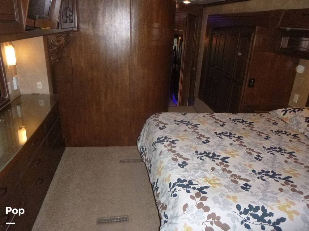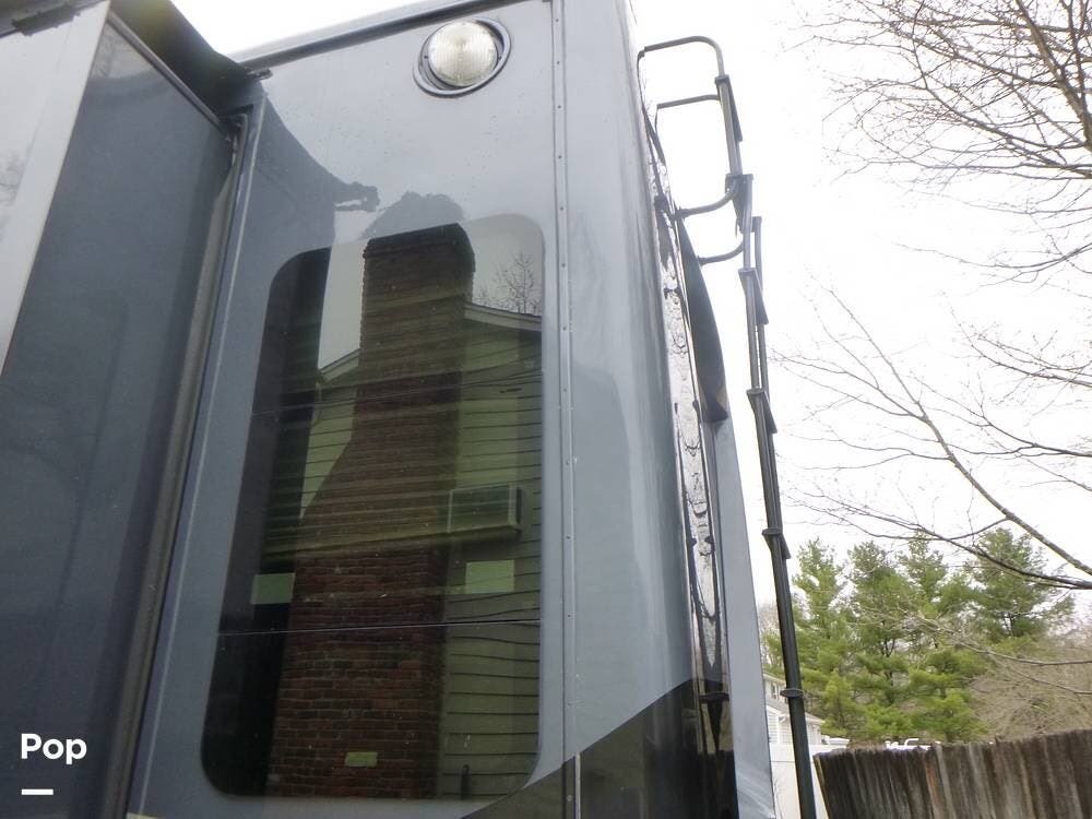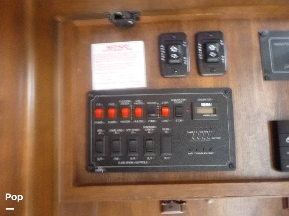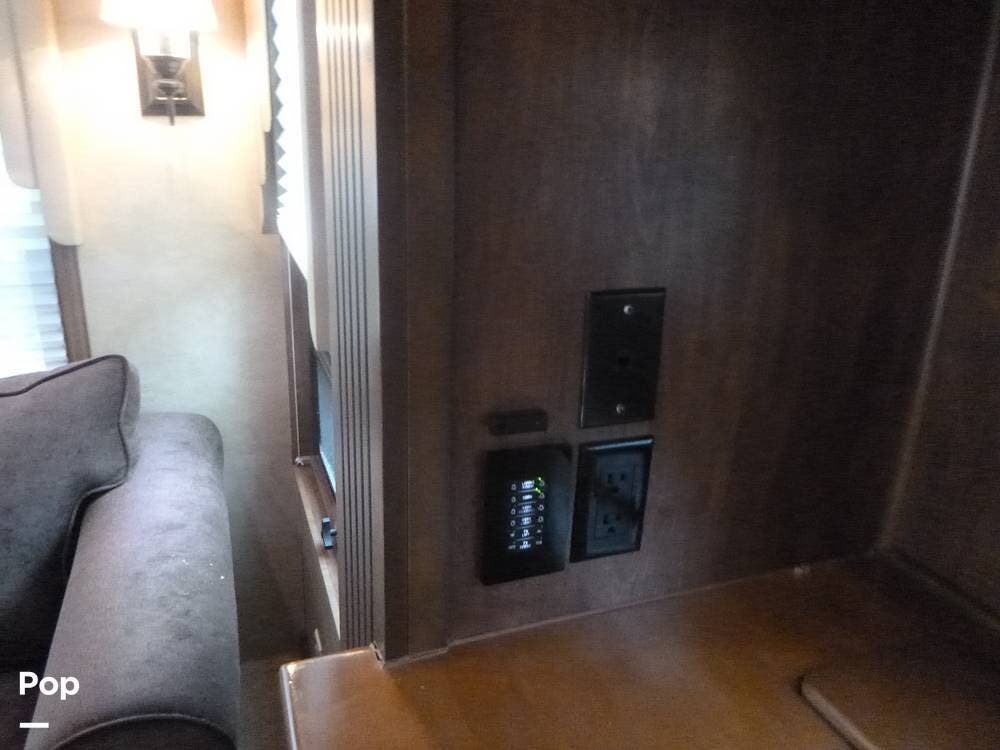 Stretching just over 38 feet with a spacious quad-slide layout, the interior opens up into a beautifully appointed living space featuring high-end finishes, solid-surface countertops, and rich hardwood cabinetry throughout. Large windows bring in abundant natural light, creating an inviting atmosphere whether you're relaxing in the rear living area or entertaining guests. The kitchen is designed with functionality in mind, offering residential-style appliances, generous counter space, and ample storage, making it feel more like a home than an RV.