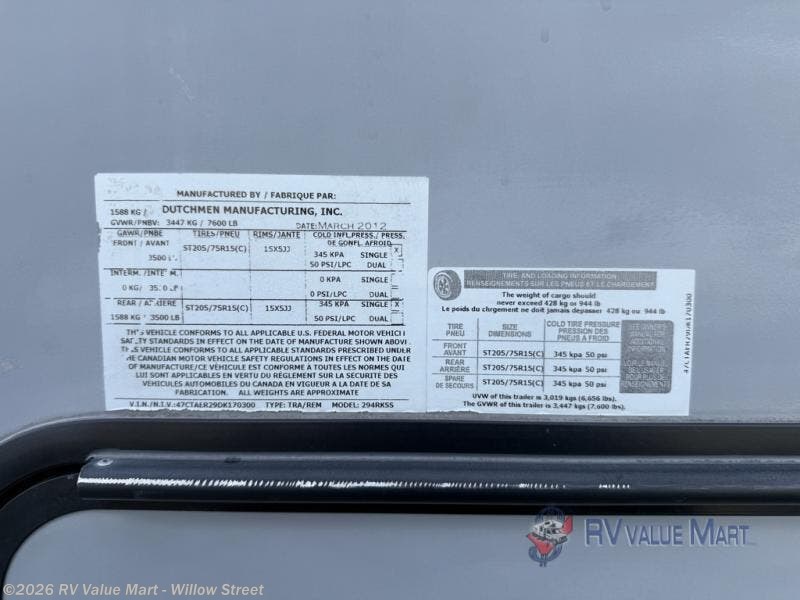 Request More Info on this 2013 Dutchmen Aerolite 294RKSS Offered for sale by RV Value Mart - Willow Street