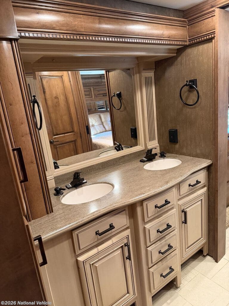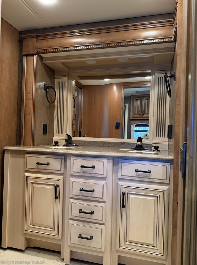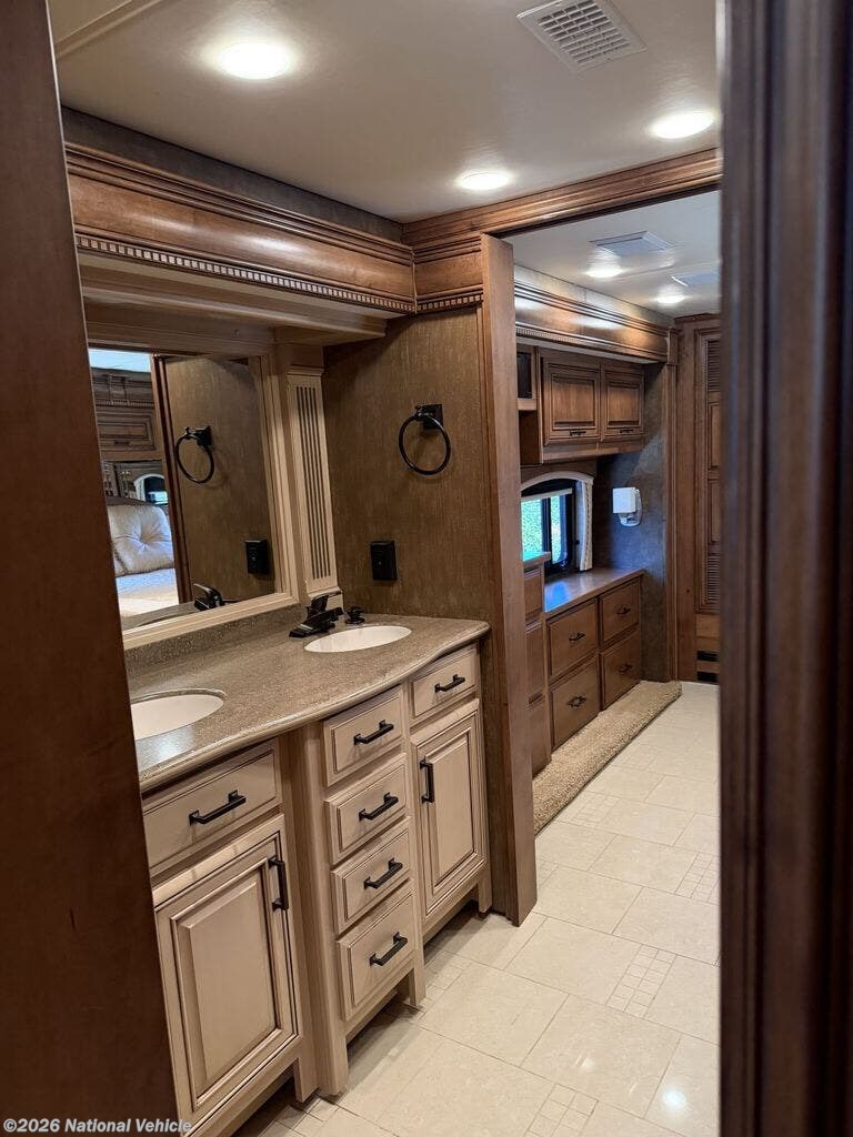 Step inside and you?re immediately welcomed by rich hardwood cabinetry, porcelain tile floors with heated flooring, and premium finishes throughout. The expansive quad-slide layout opens up into a residential-style living space designed for both relaxation and entertaining. Enjoy four TVs, plush seating, and a high-end entertainment setup, all enhanced by multiplex lighting for modern convenience.