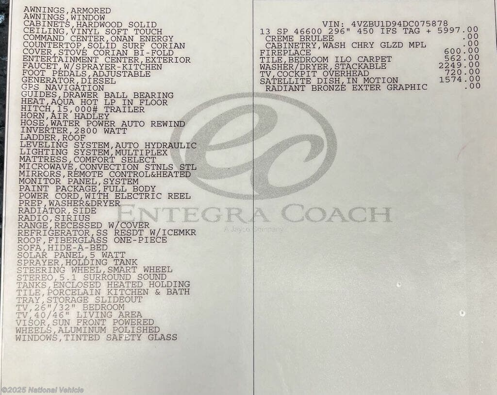 - ManufacturerEntegra Coach, Inc.