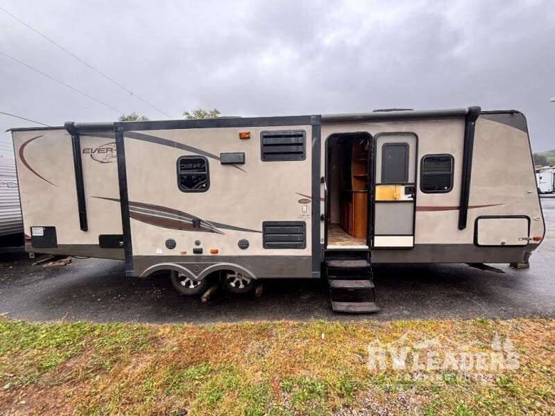 Everything you need for the perfect RV trip is packed into this 2013 EverGreen RV Ever-Lite 30KIS-DS. Be a part of the EverGreen RV family with this 2013 EverGreen RV Ever-Lite 30KIS-DS. This rig sleeps 5, so it makes the perfect family RV. Two slides expand this rig into a comfy living space. If you’re thinking of heading off grid, this rig has a 56 fresh water tank. While the inside of this rig is enough on its own, the outside also features slideout.