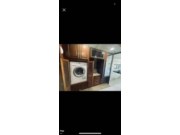 The master bedroom has a queen-sized bed, mirrored hanging closet, flat screen TV, plenty of draws, and a washer/dryer combo.