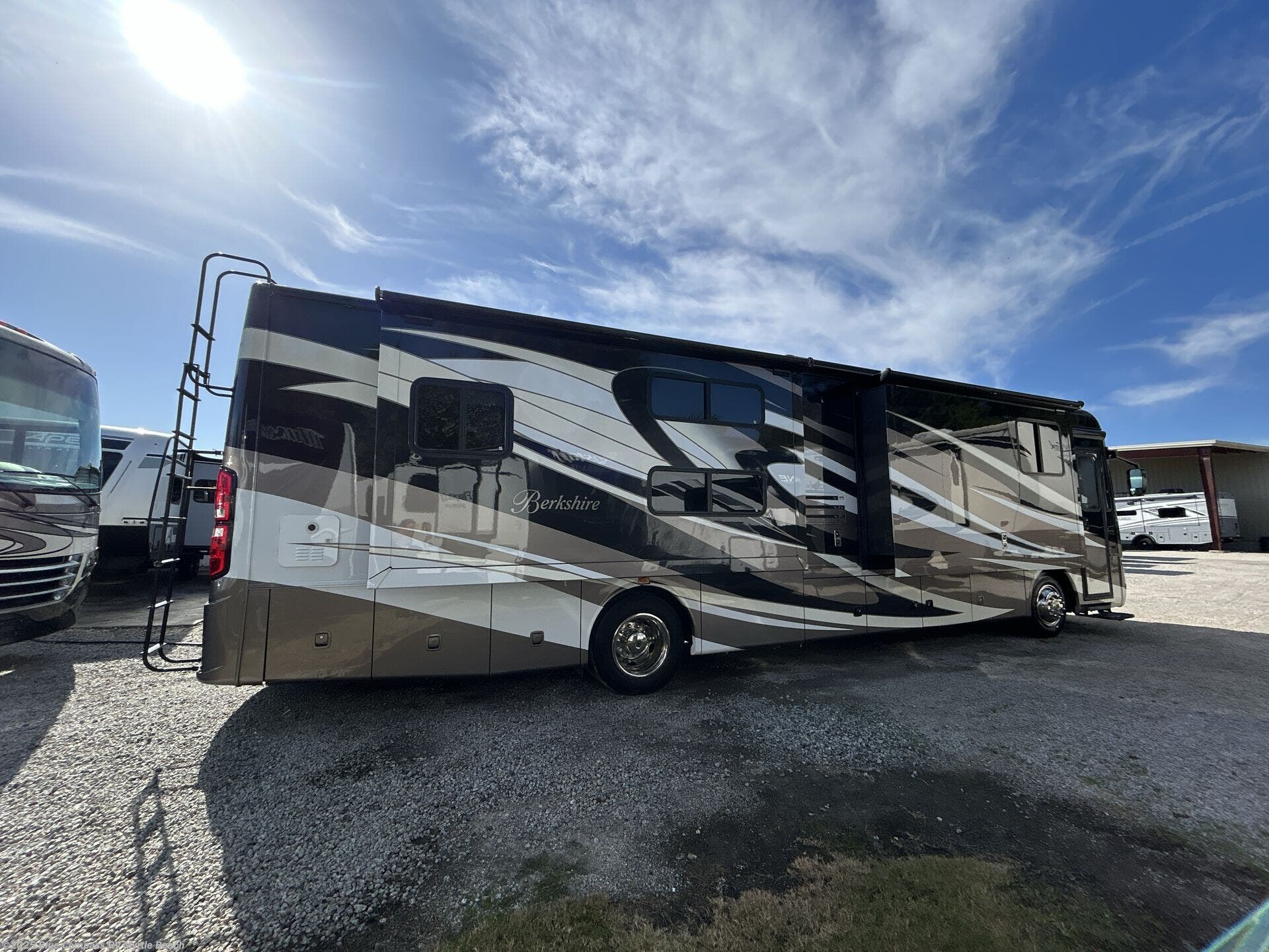 Quad Slide Berkshire Motor Home, Rear Bedroom w/Queen Bed Slide, Wardrobe w/Mirrored Doors, Chest of Drawers/TV Slide, Private Toilet Area w/Lav., Dbl. Kitchen Sink/3-Burner Range/Microwave/Expandable Sofa Slide, Lounge Chair/40" TV/Booth Dinette/Pantry/Refrigerator Slide, Lav., Shower, Overhead Cabinets Throughout & Much More. Available Options May Include: Washer/Dryer, Free-Standing Table & Chairs, Fireplace. Cummins ISB-XT 360HP Engine Available.