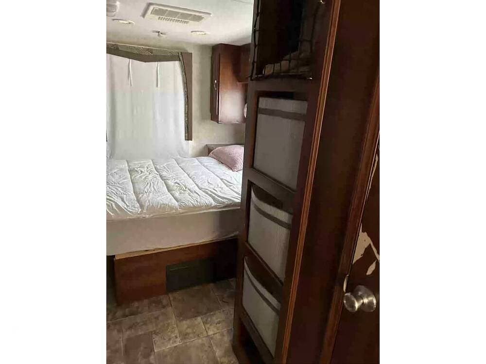 Walking toward the back, you'll find a set of bunk beds adjacent to the full bathroom and the master bedroom with plenty of drawers and storage.