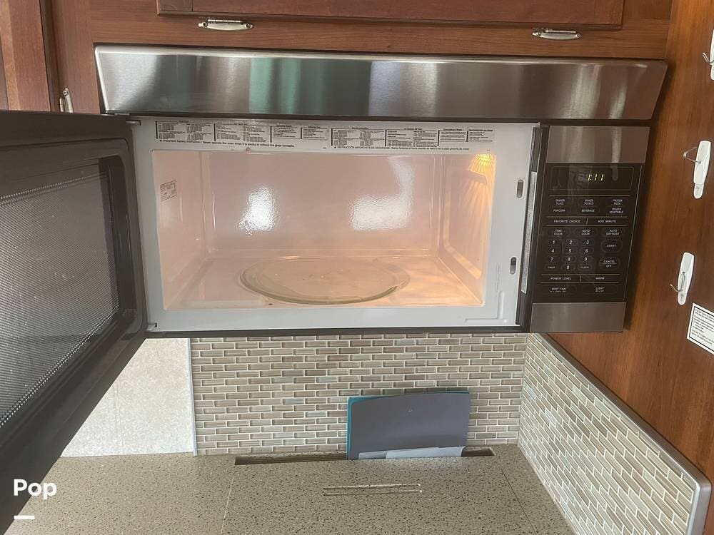 The galley has a large refrigerator, stovetop, oven, sink, microwave, pantry, plenty of cabinets, and counter space.