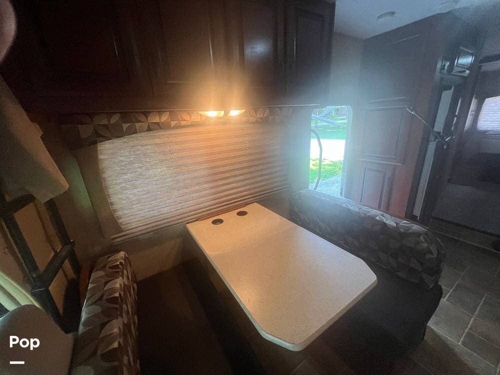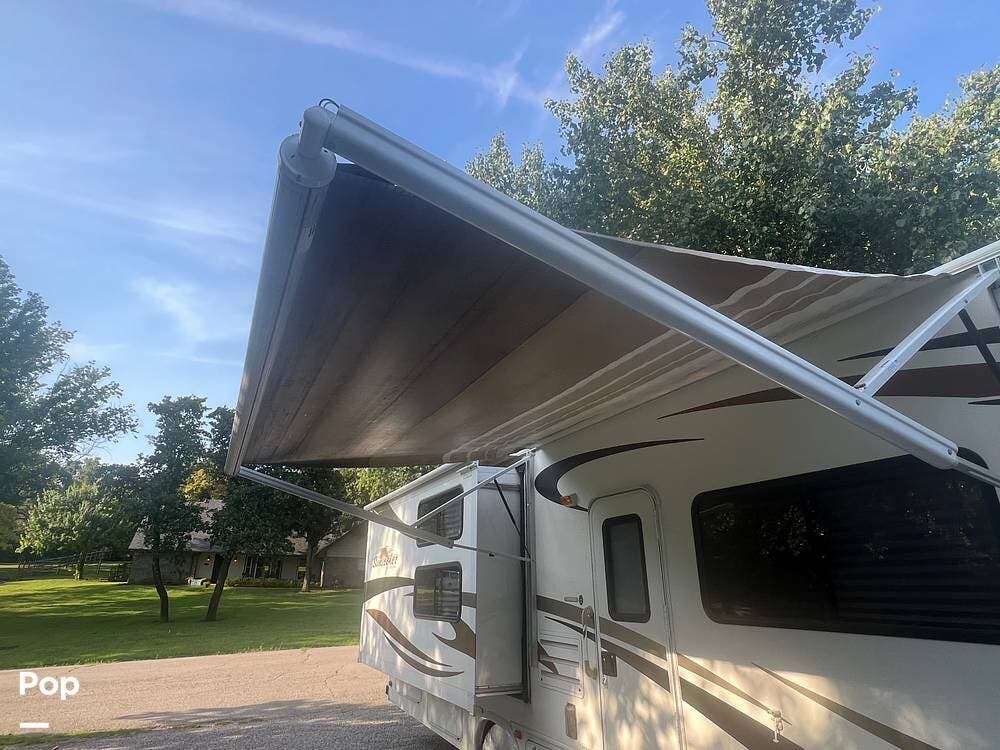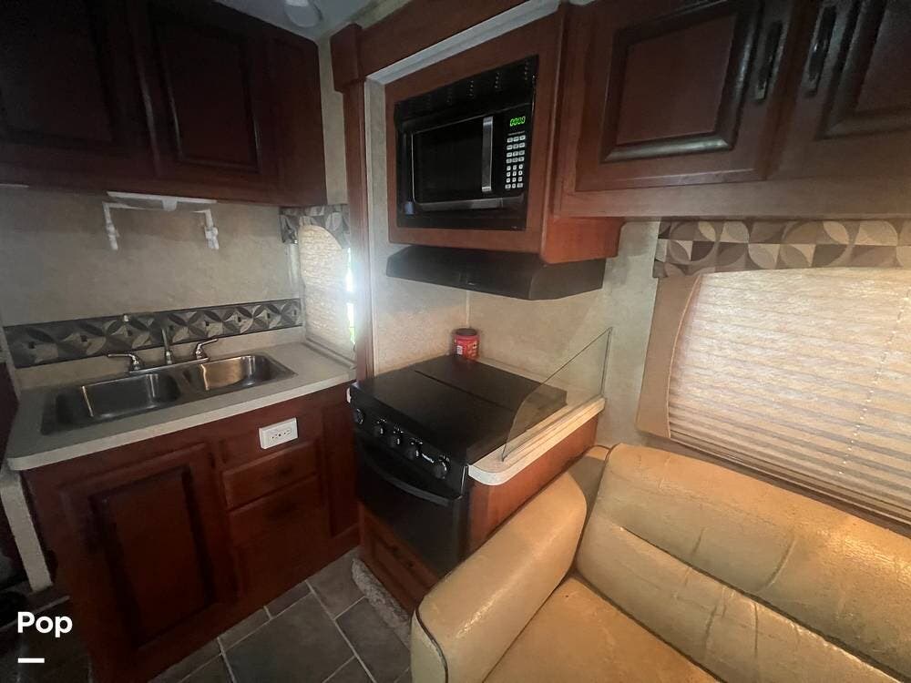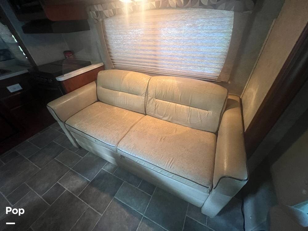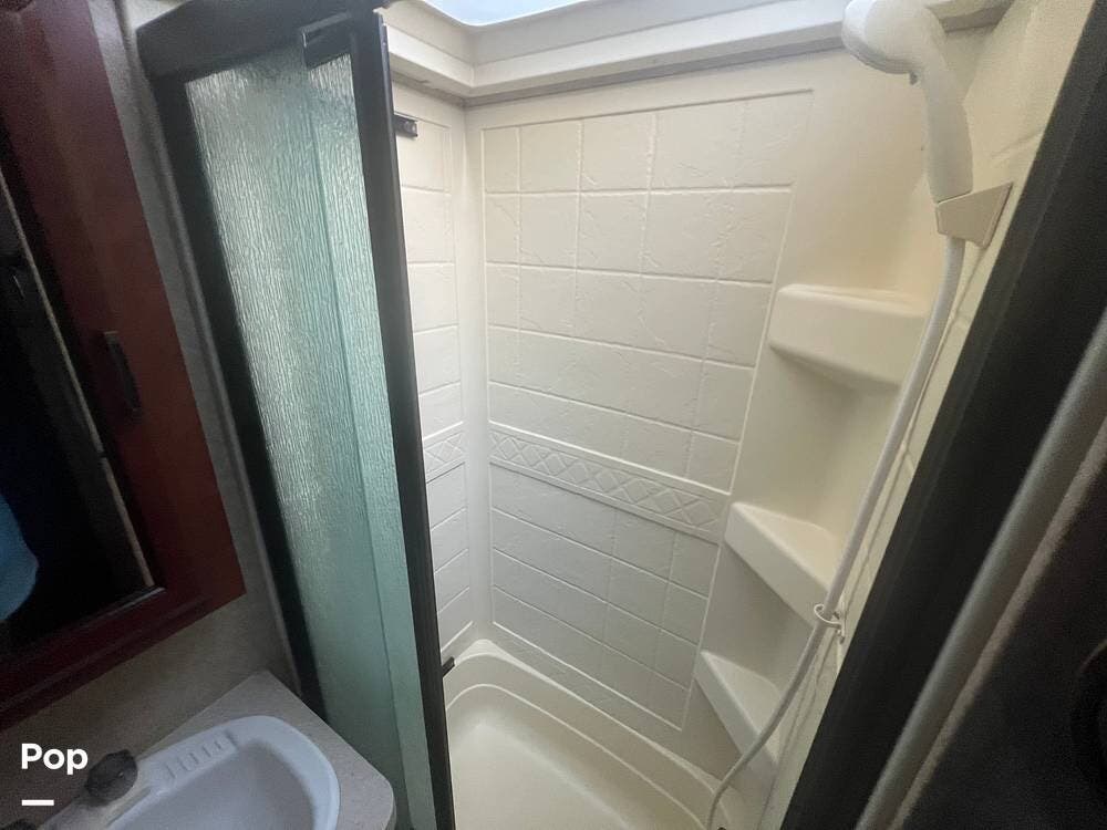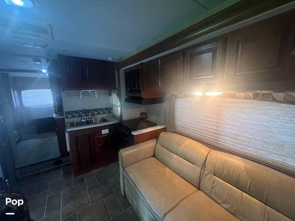 Measuring around 32 feet in length, this RV offers a spacious interior layout. It includes a living area with a slide-out for added room, a well-equipped kitchen, and ample sleeping accommodations.