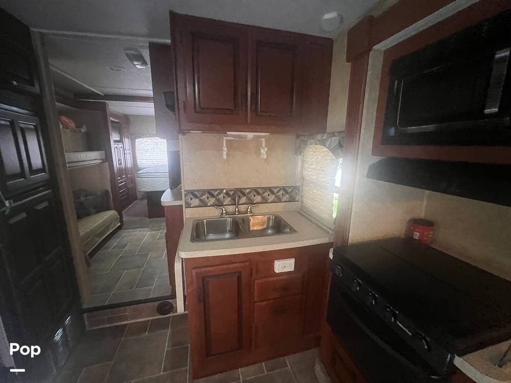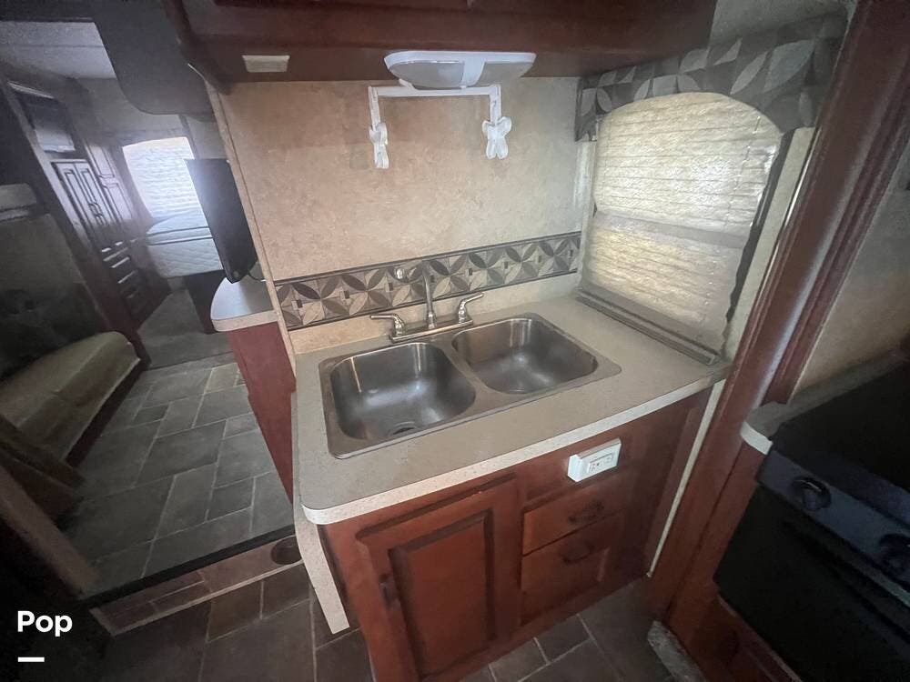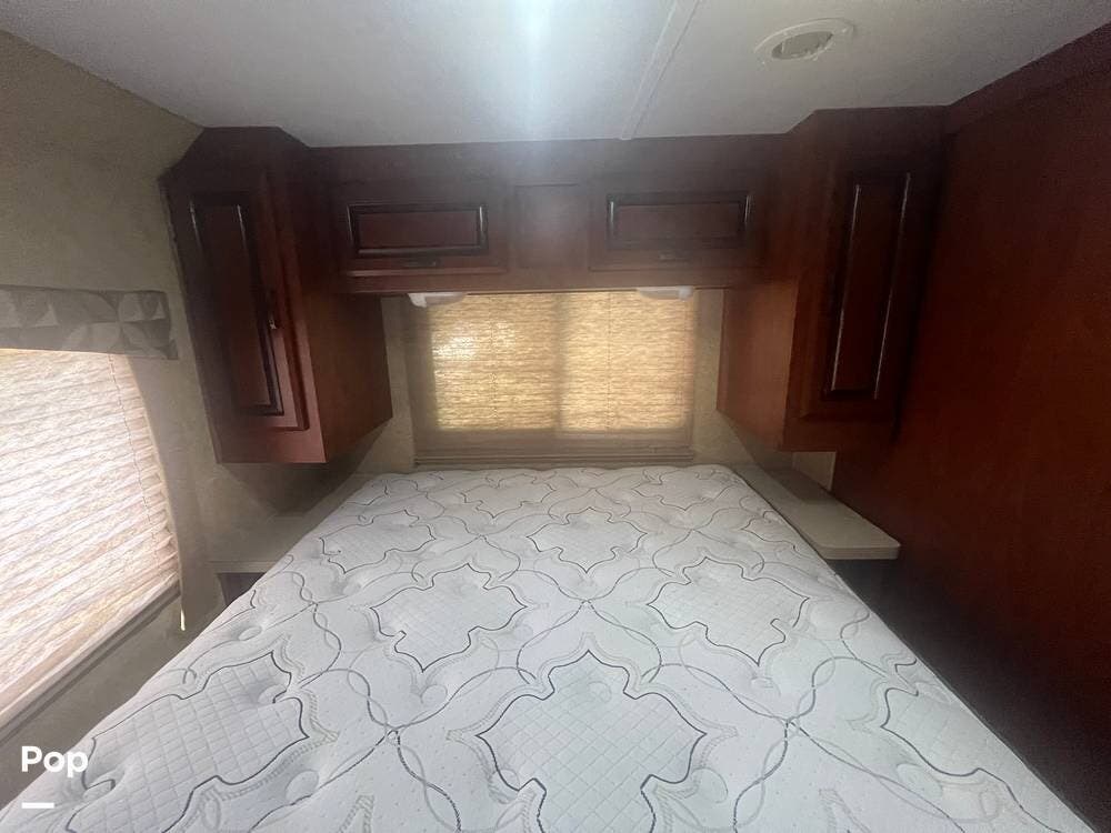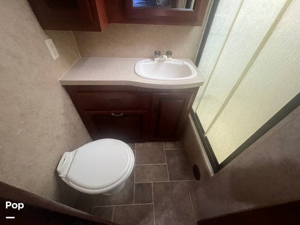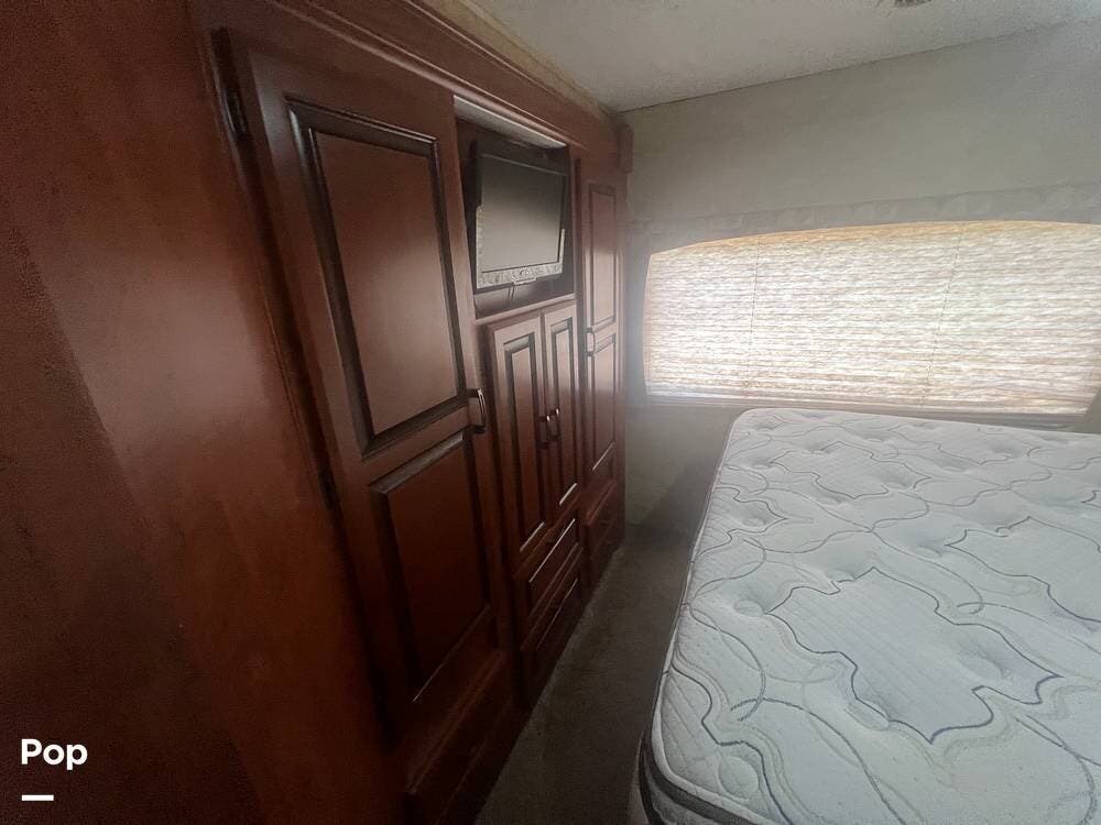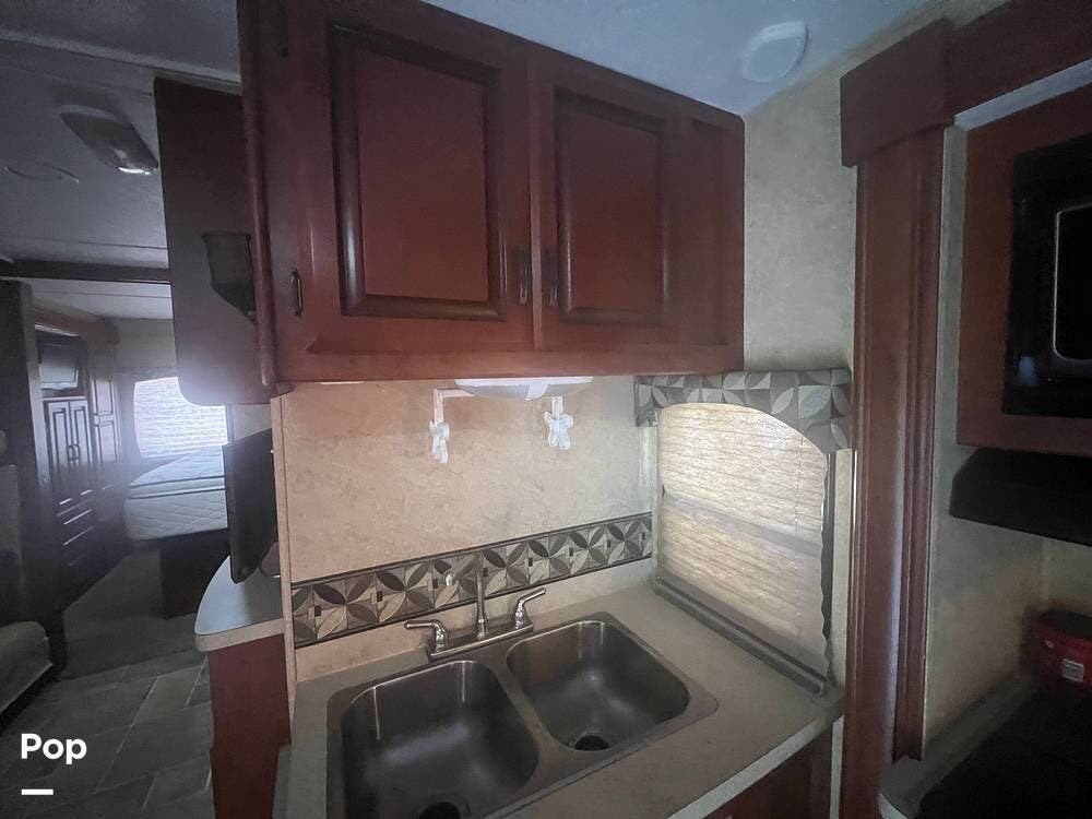 Measuring around 32 feet in length, this RV offers a spacious interior layout. It includes a living area with a slide-out for added room, a well-equipped kitchen, and ample sleeping accommodations.
