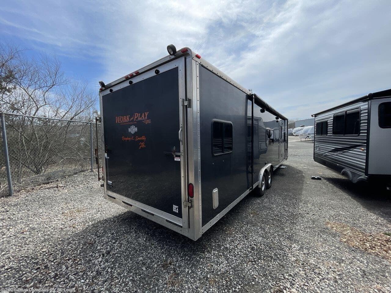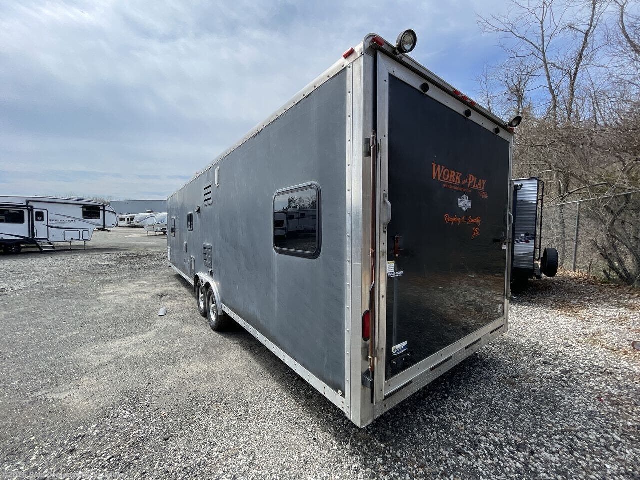 Work and Play Toy Hauler Travel Trailer w/Rear 10' 5" Cargo Area, Overhead Cabinet Throughout, Refrig., 3 Burner Range, Micro., Double Kitchen Sink, Booth Dinette, Overhead Cab., TV Stand, Bath w/Shower, Toilet, Lav., Front Queen Bed w/Dbl. Ward. & Drawers, Pass Through Storage, Overhead Shelves and More.