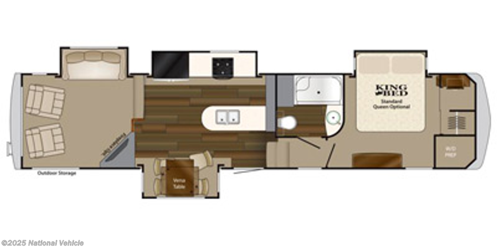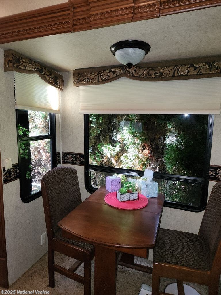 Inside, the floor plan stands out for its thoughtful layout and upscale touches. The rear living area is perfect for hosting or unwinding, and features large windows, lounge seating, and space to entertain. The central kitchen and dining zone include residential-style finishes: solid countertops, ample cabinetry, and well-placed appliances, to make cooking on the road truly enjoyable. Up front, the master suite offers a king-sized bed space, wardrobe storage, and a quiet retreat ambiance. Throughout the 3691SK you?ll find quality materials, carefully considered storage, and amenities built for extended stays.