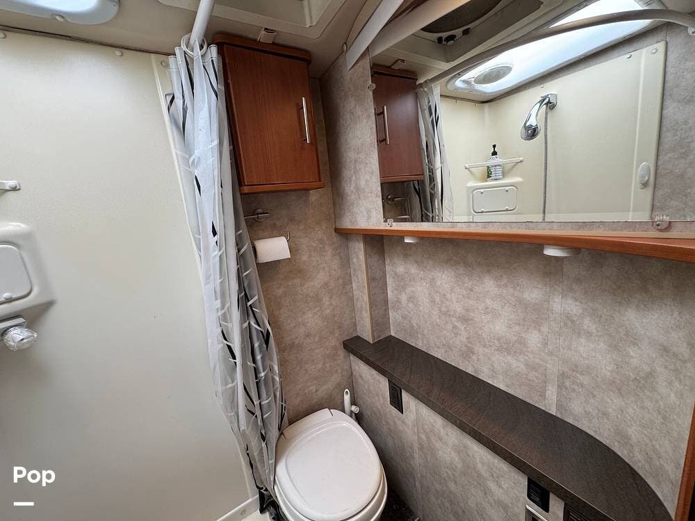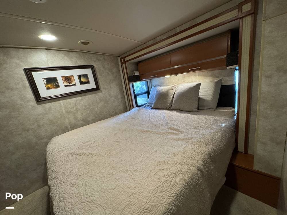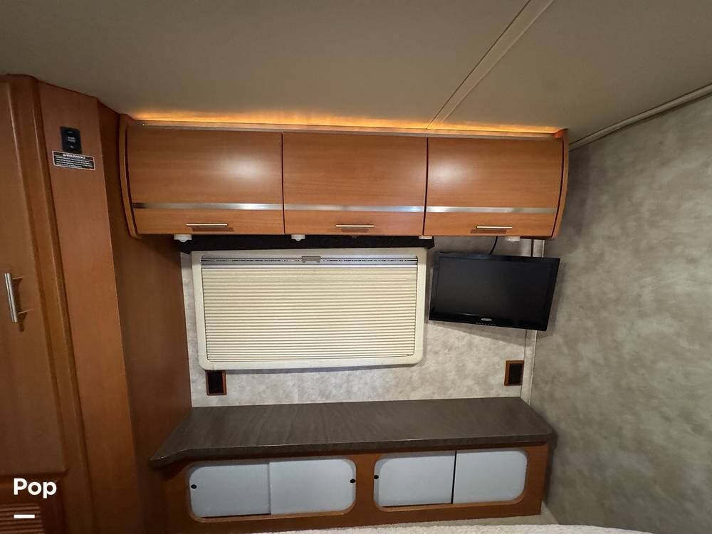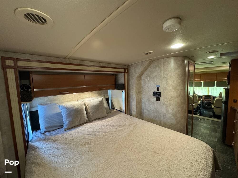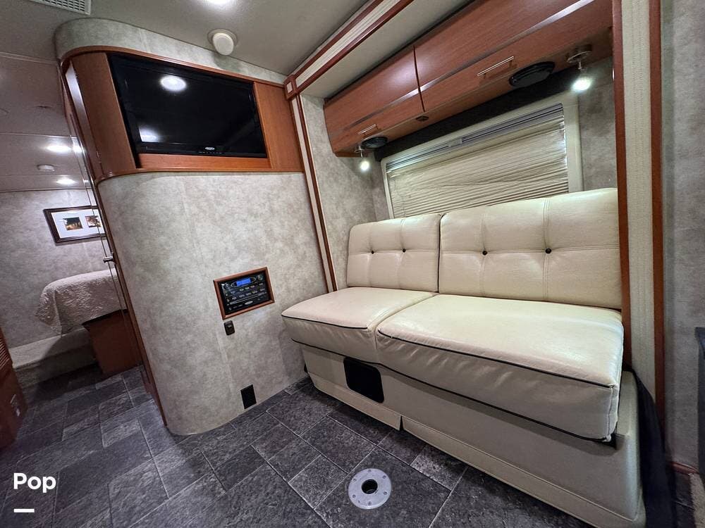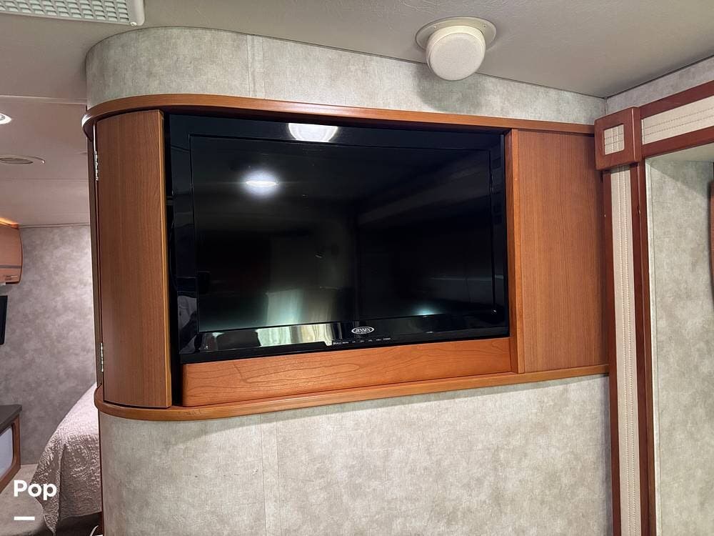 Up front, the well-appointed cockpit features an RV Radio rearview monitor system with an LCD touchscreen, weather band, iPod interface, and a rear camera with one-way audio, making navigation and backing a breeze.
