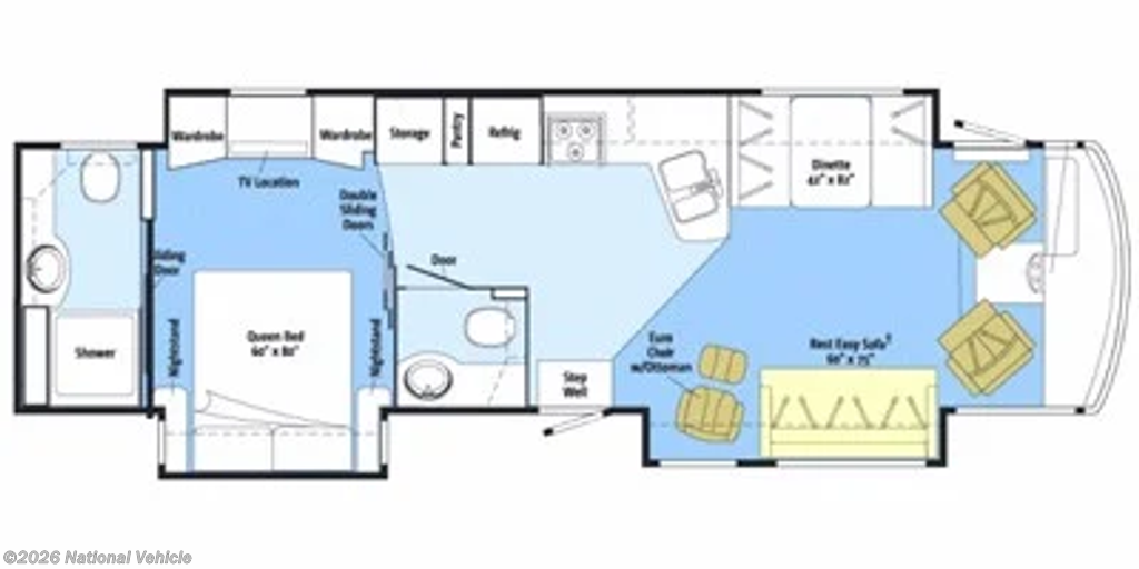 This coach is non-smoking, free and clear, and includes towels, linens, kitchen amenities, and many additional accessories?just bring groceries and clothes and hit the road.