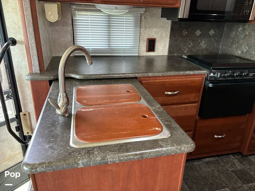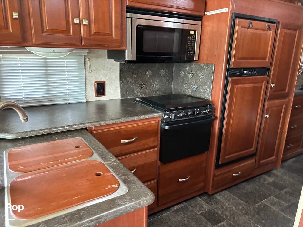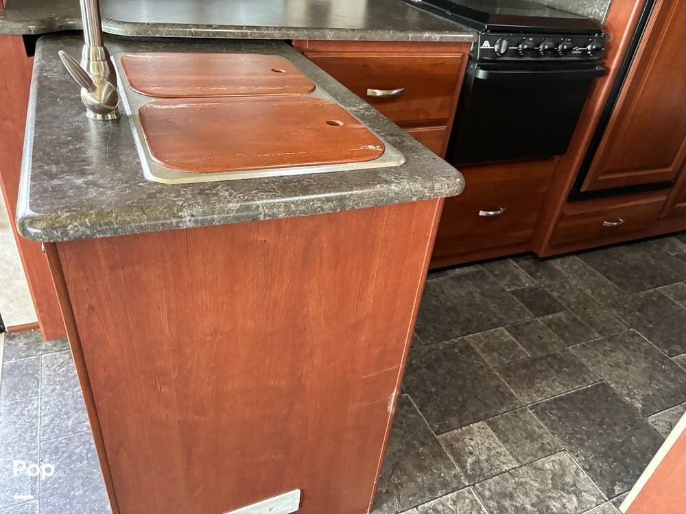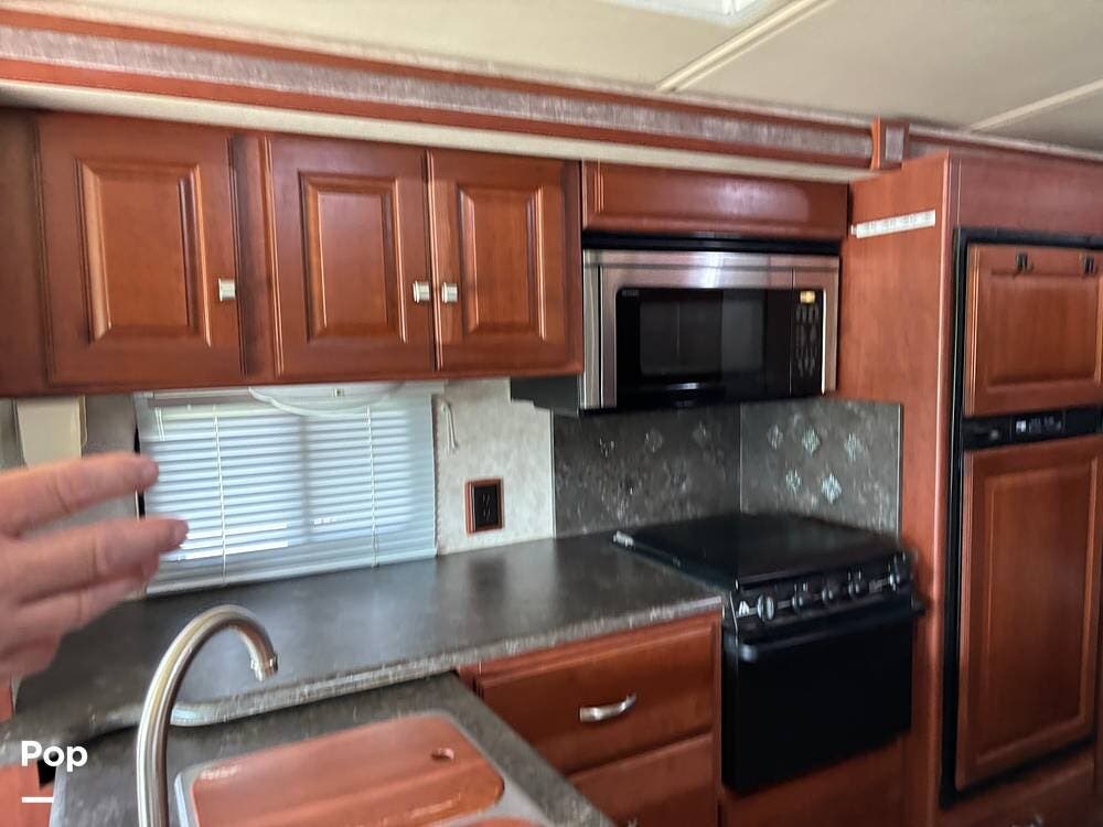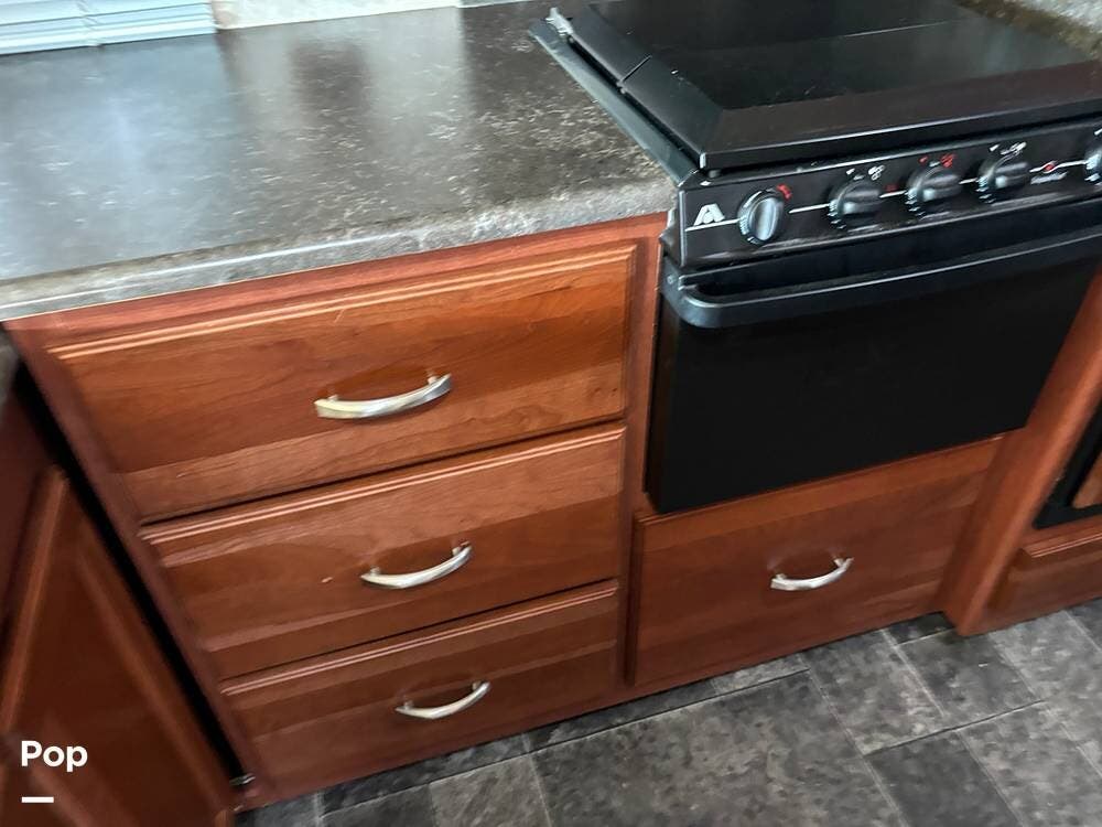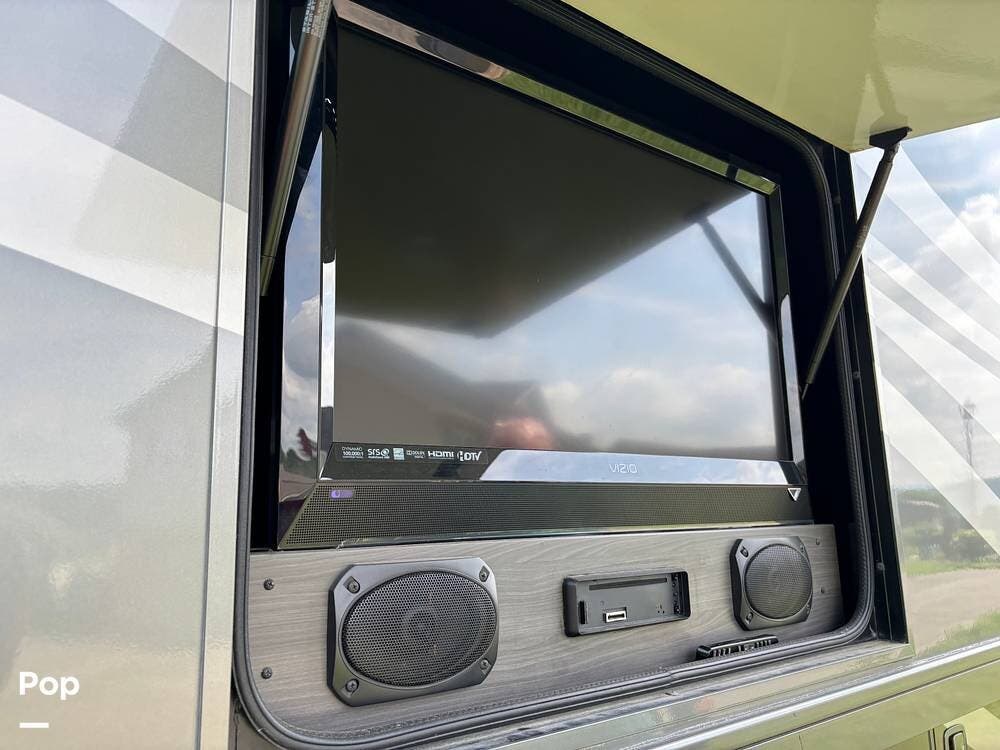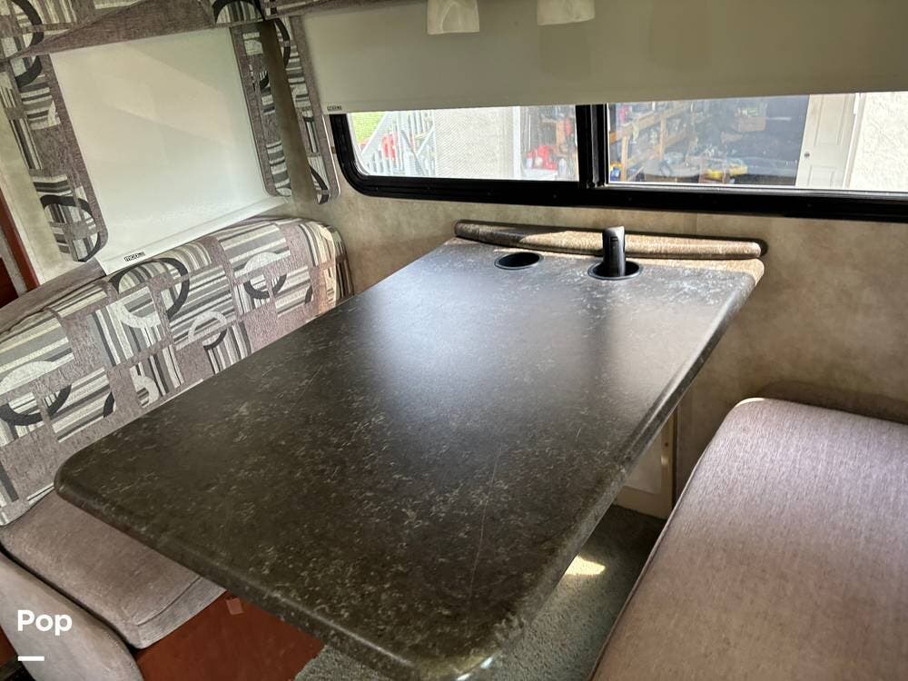 The kitchen has modern appliances, ample counter space, and plenty of storage, making preparing meals on the road easy. The dining area is cozy and inviting, perfect for enjoying meals or relaxing with a good book.
