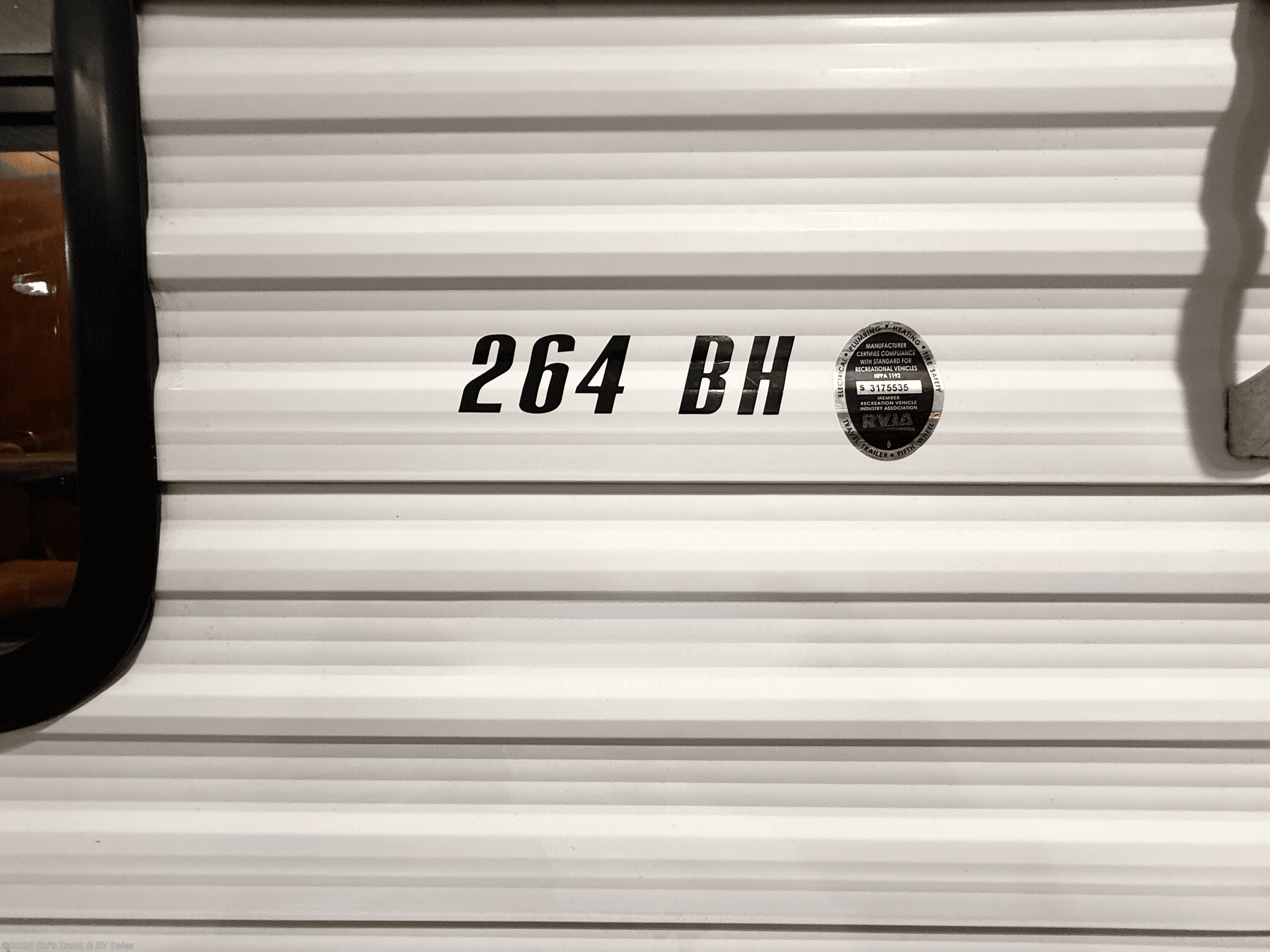 Pre-Owned 2013 Jayco Swift 264BH Bunkhouse Travel Trailer; 26 Foot; Sleeps 8 ; Hitch Weight: 500 Lbs.; Dry Weight: 4352 Lbs.; 30 Amp; Power Tongue Jacks; Manual Stabilizer Jacks; 48 Gal. Fresh Water Cap.; 32 Gal. Black Water Cap.; 32 Gal. Gray Water Cap.; Two 20 Lbs. Propane Tanks; 13,500 BTU AC; 20,000 BTU Furnace; 6 C.F. Gas/Elec. Refrigerator; 6 Gal. Gas/Elec. Water Heater; Microwave; 3-Burner Stove/Oven; Two TV Jacks; AM/FM/CD/DVD; Booth Dinette; Jack-knife Sofa; Queen Bed; One Bathroom with Shower/Tub Combo; 16 Foot Power Awning with Patio Light; Outside Shower; Exterior Storage; Goodyear Tires; Spare Tire; Weight Distribution Hitch Included; Very Clean/Well Maintained Trade In Unit; No Financing Available; Nice Pre-Owned Bunkhouse Travel Trailer for the Price: $8,495. Call Skis Truck & RV Sales at 765-344-1111 or visit us at for more information.