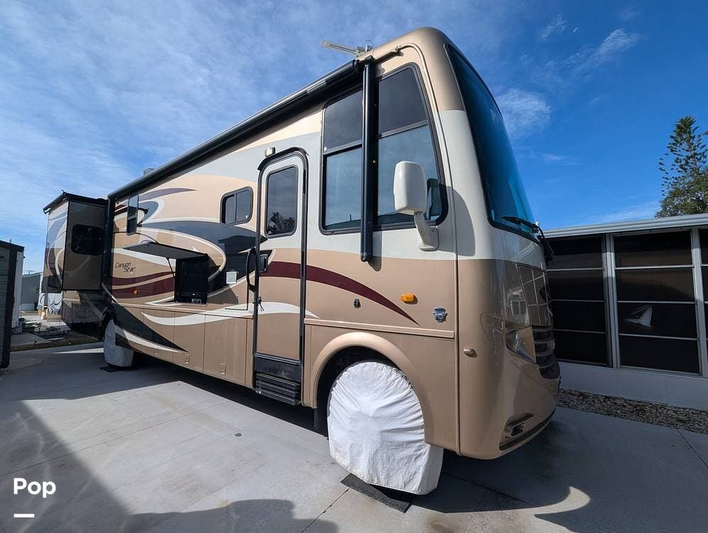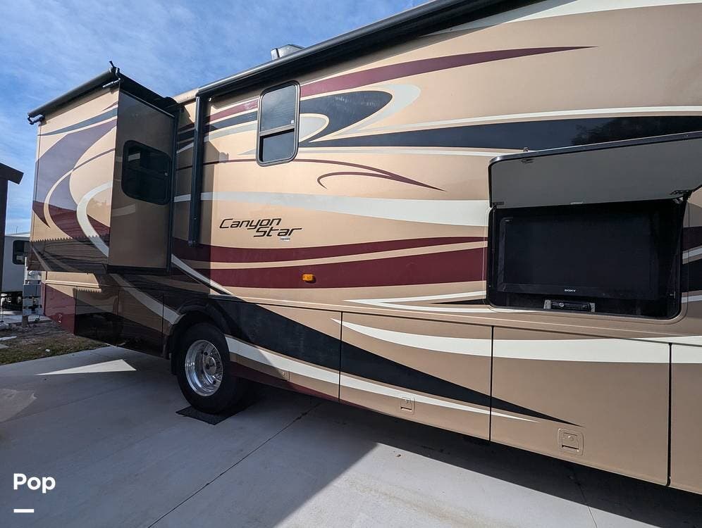 If you are in the market for a class a, look no further than this 2013 Canyon Star 3610, priced right at $90,000.00. Non-smoking. This Class A is located in Palmetto, Florida and is in good condition. She is also equipped with a Ford engine that has 47,000 miles.