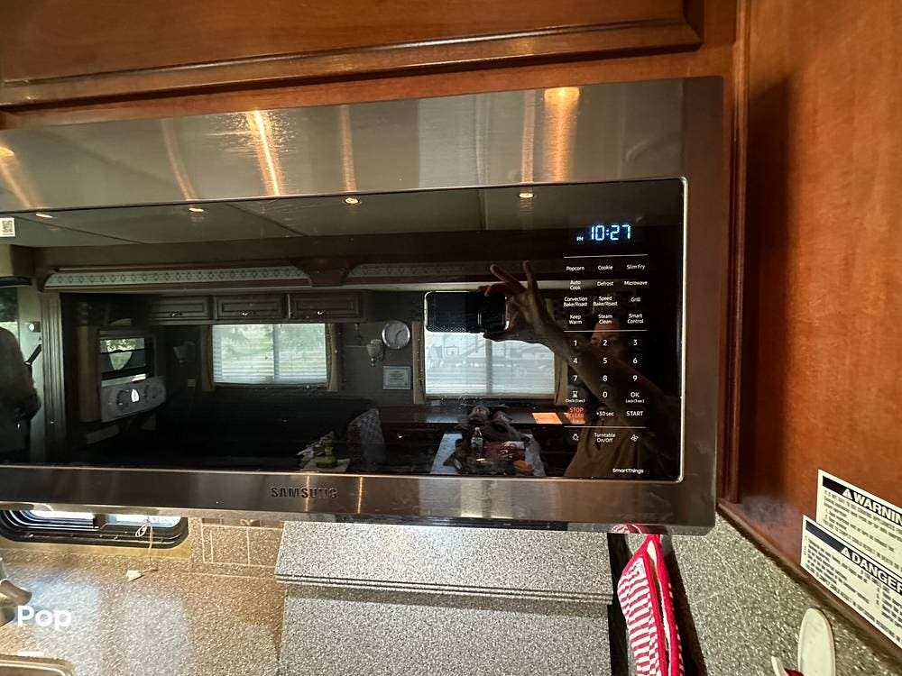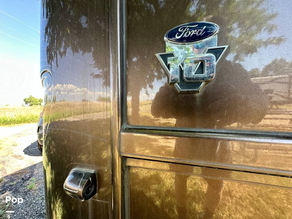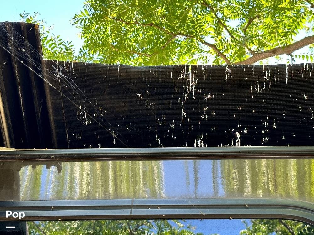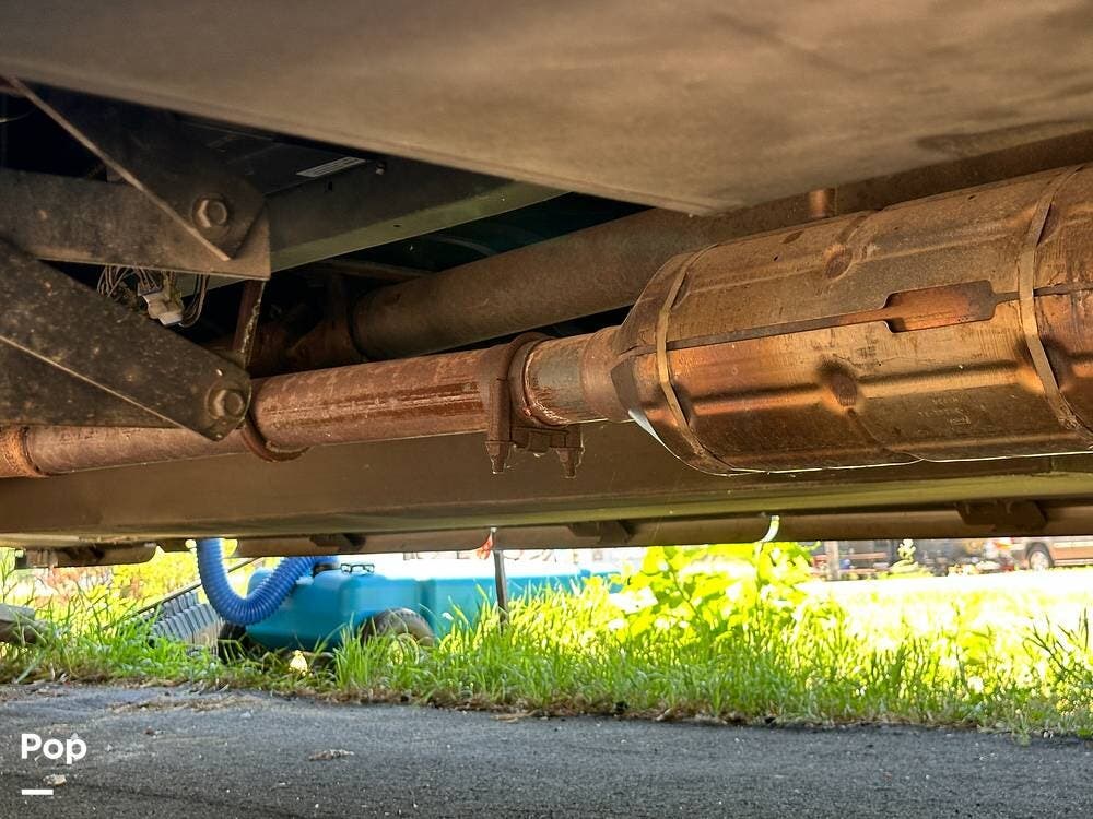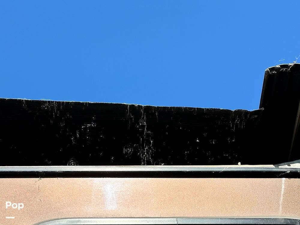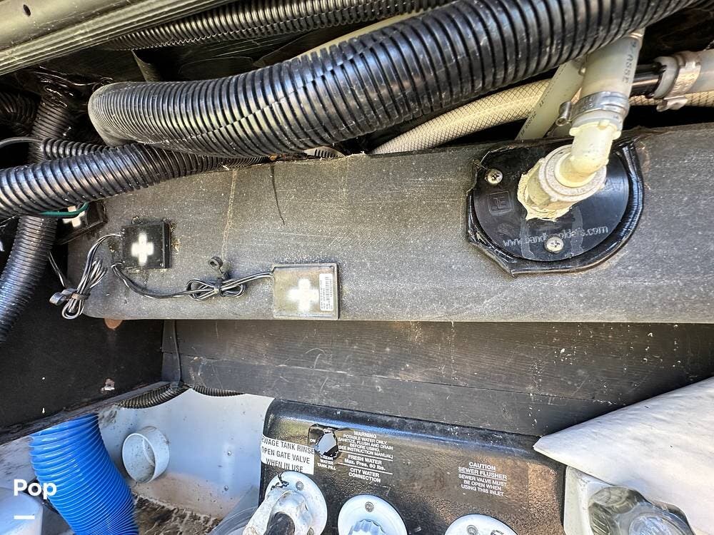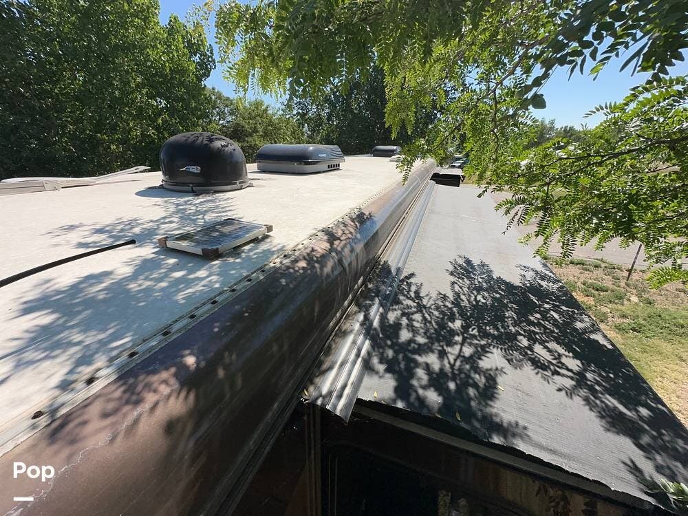 The exterior features include full body paint, double-pane tinted windows, two 13,500 btu AC units, rear and side view cameras, a 5.5kW Cummins Onan generator, a 10k tow capacity to take your vehicle or toys along, and a roof access ladder.