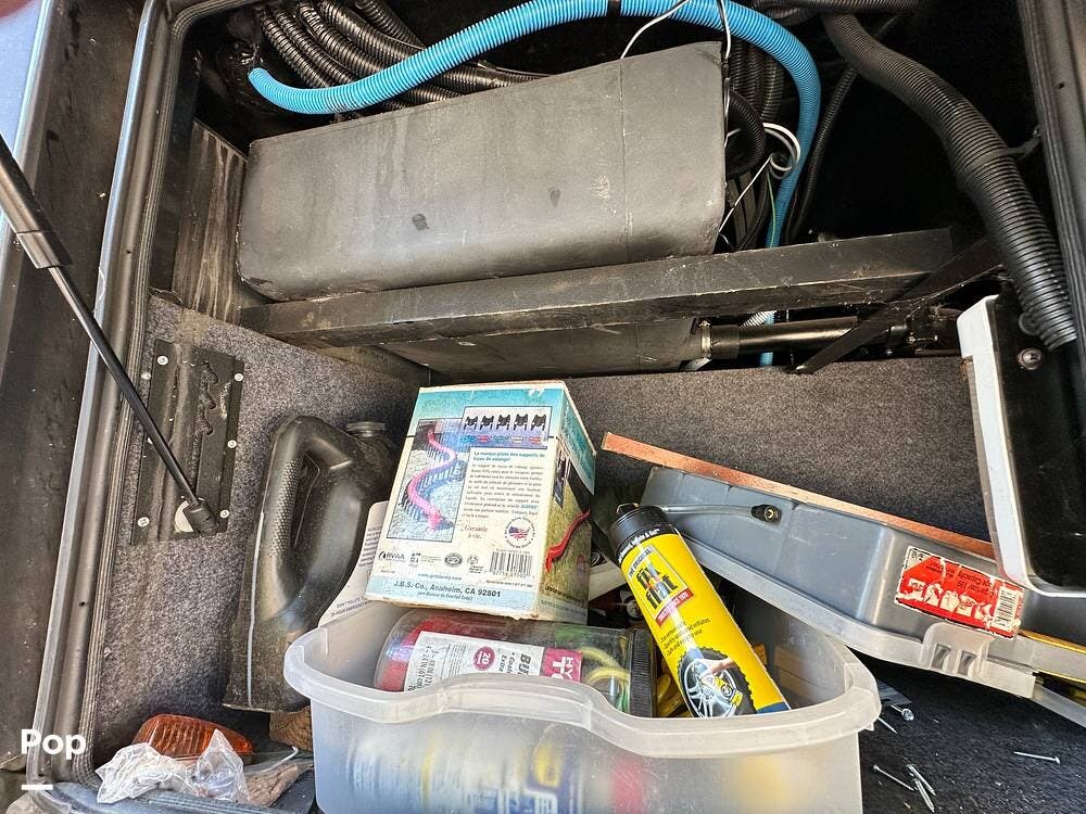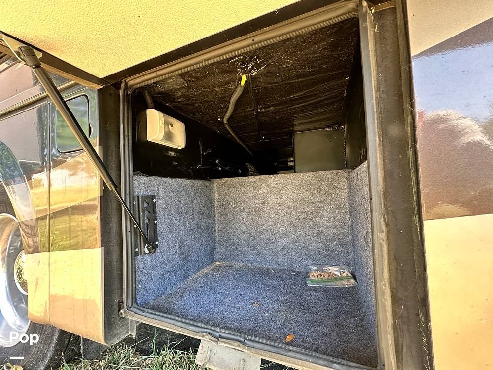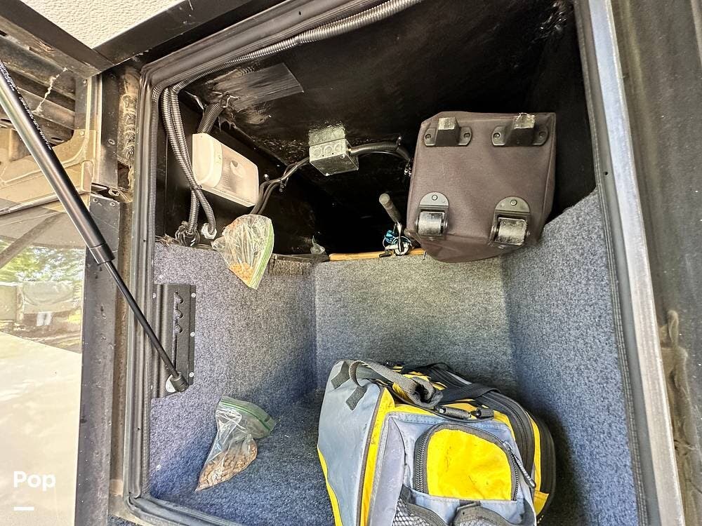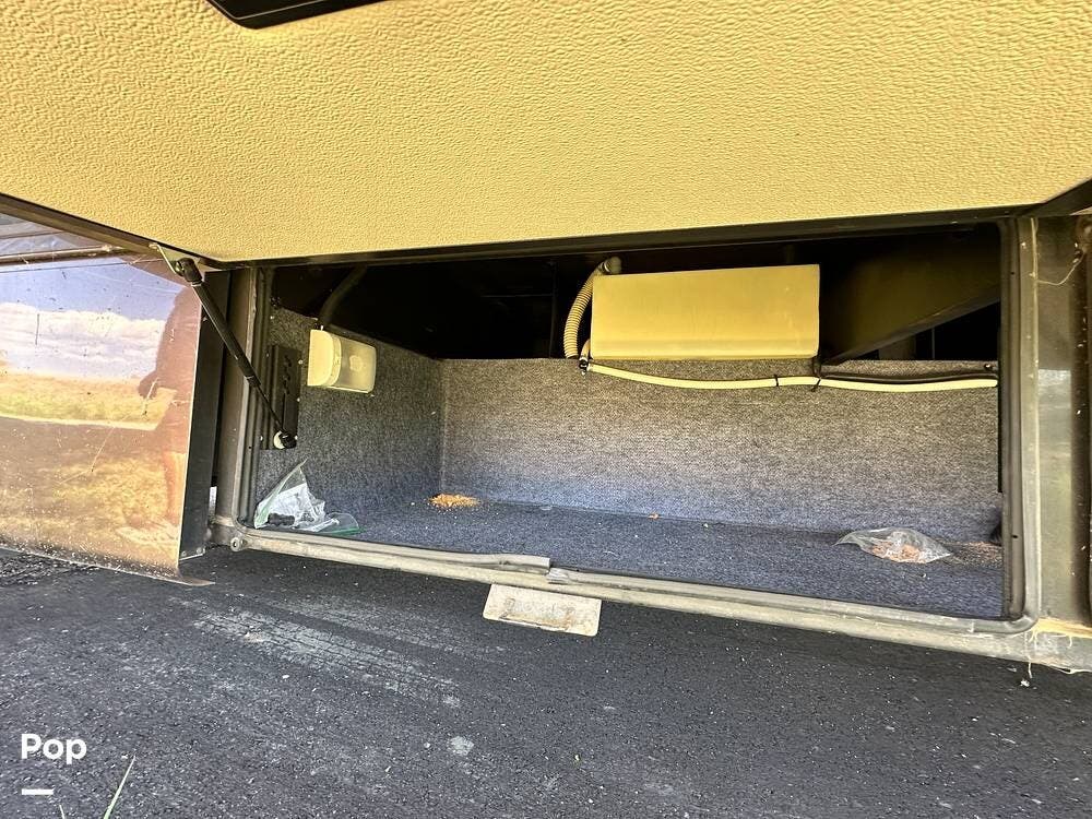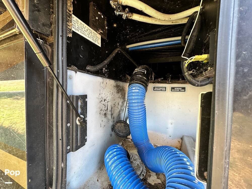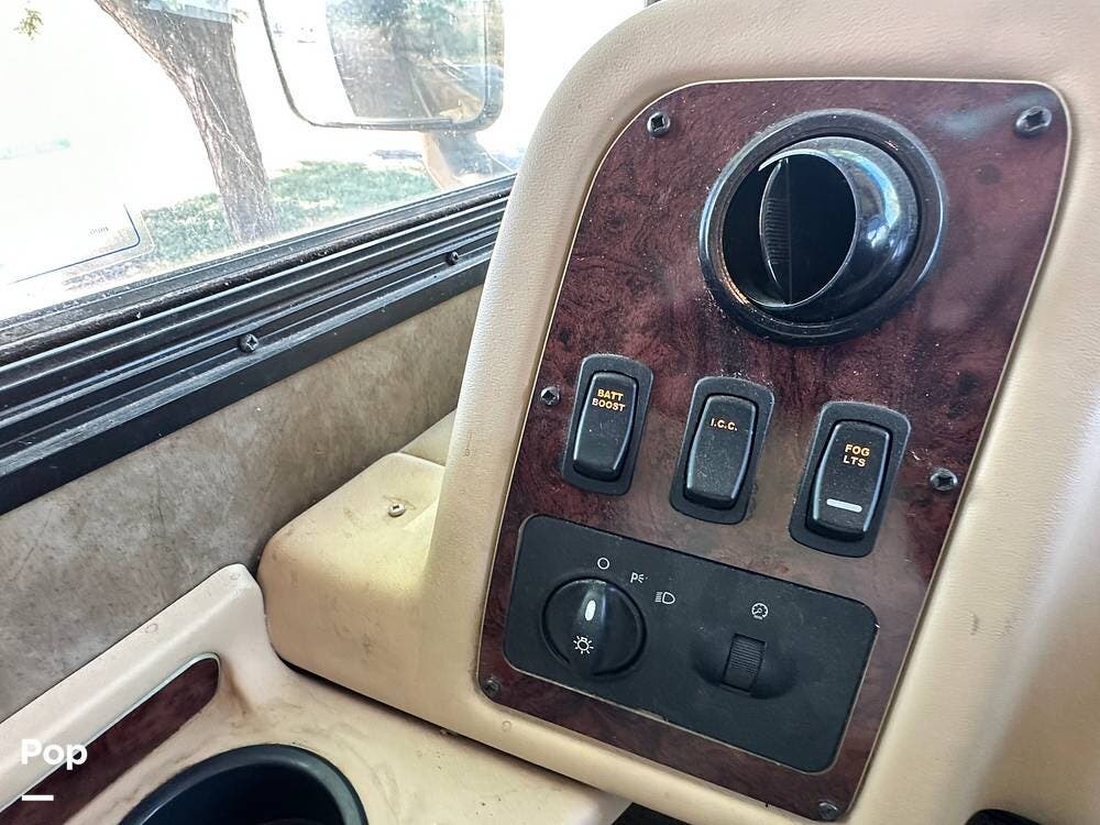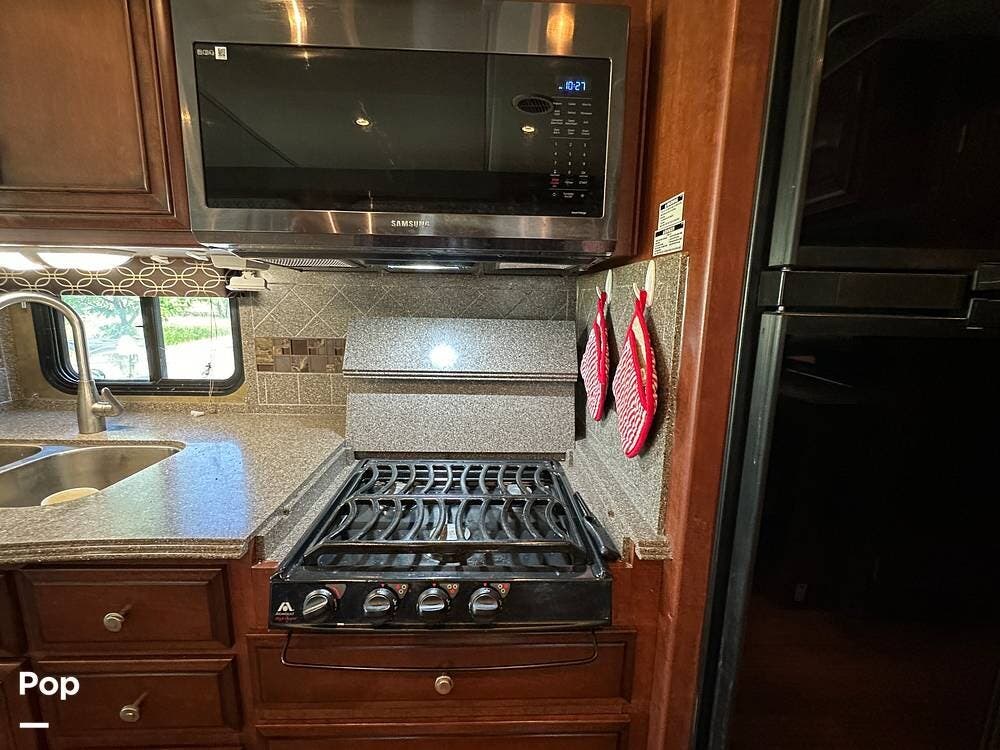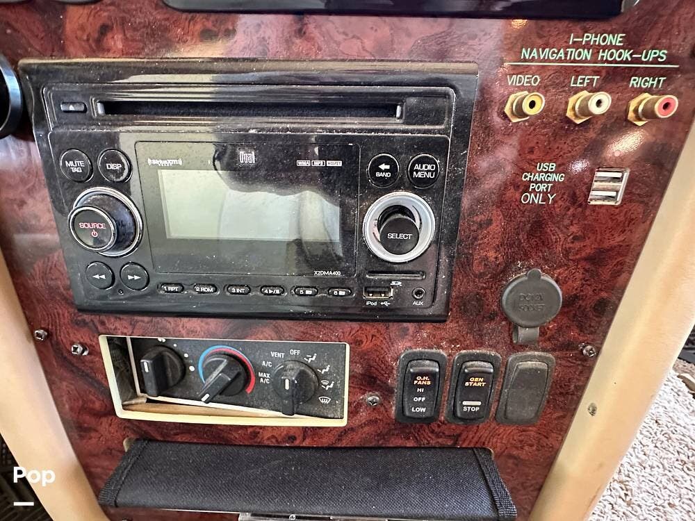 The exterior features include full body paint, double-pane tinted windows, two 13,500 btu AC units, rear and side view cameras, a 5.5kW Cummins Onan generator, a 10k tow capacity to take your vehicle or toys along, and a roof access ladder.