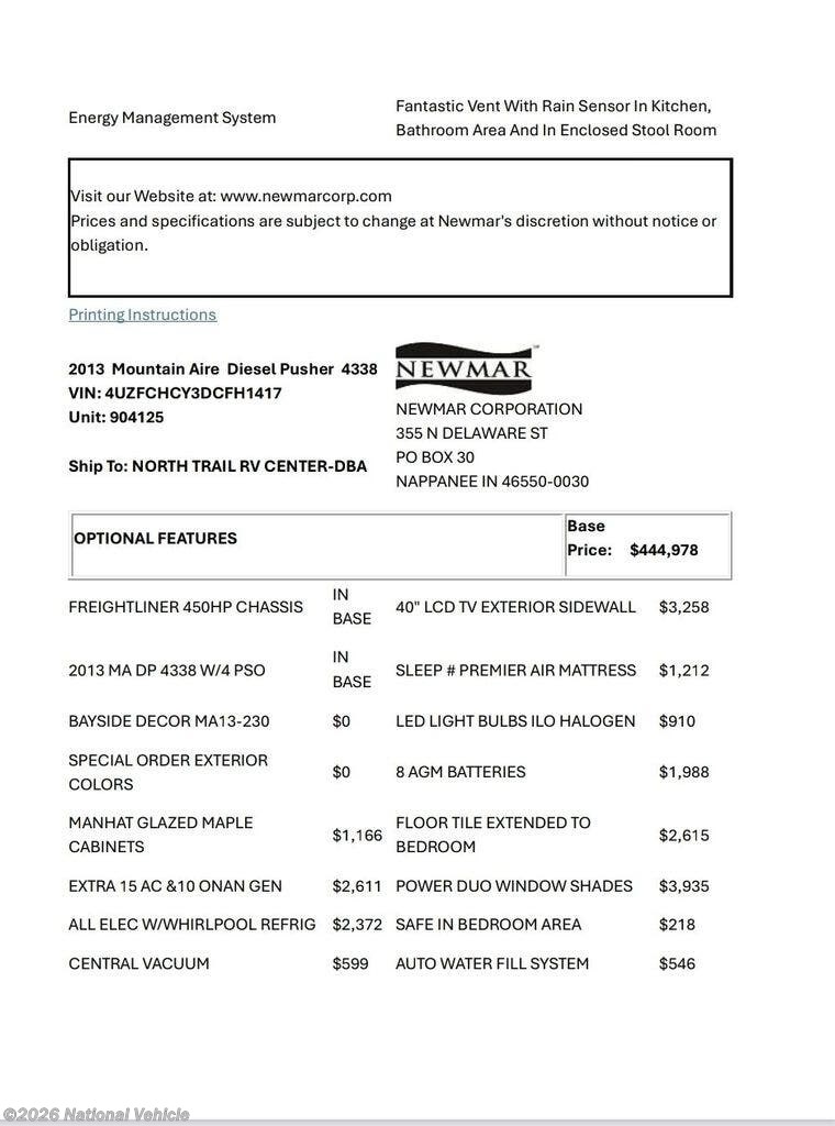 Request More Info on this 2013 Newmar Mountain Aire 4338 Offered for sale by National Vehicle