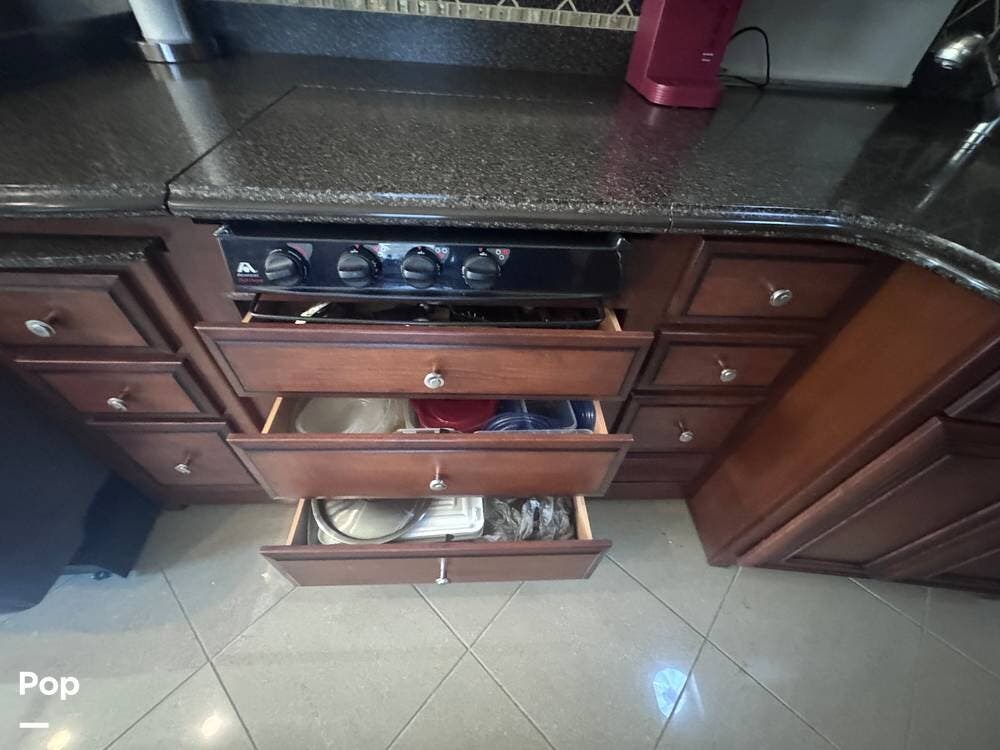 The galley offers the convenience and quality of home, with elegant finishes and generous storage to make travel both practical and enjoyable.