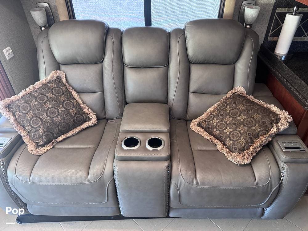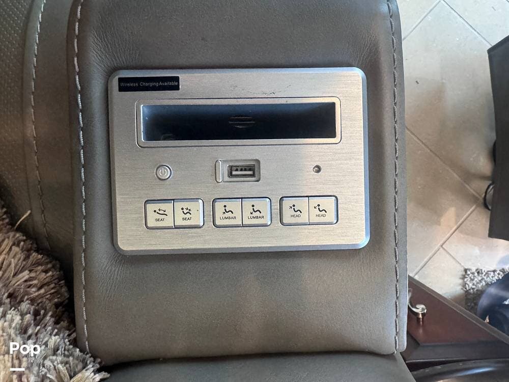 The spacious living area now features four new powered recliners with built-in wireless phone charging, complemented by reupholstered driver and passenger seats for a fresh, modern look.
