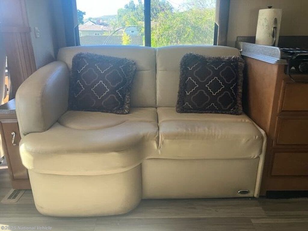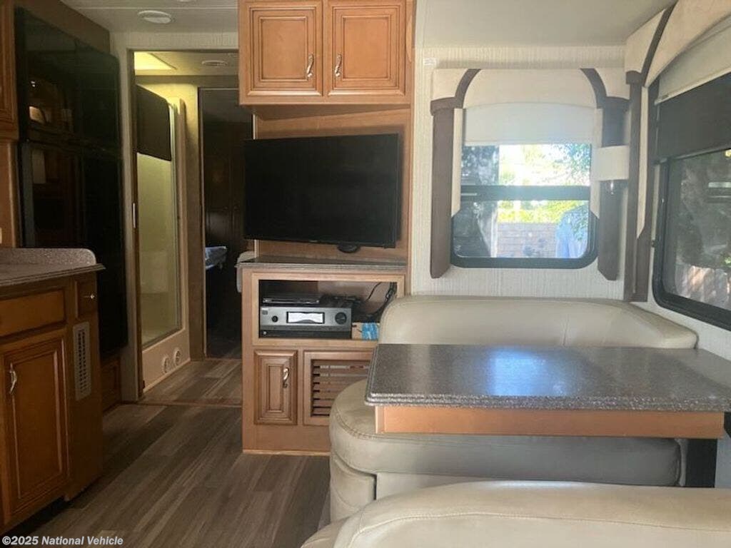 Inside, the Ventana LE welcomes you with an elegant, residential-style interior featuring rich cabinetry, solid-surface countertops, premium flooring, and beautifully appointed living spaces. The spacious living area, enhanced by slide-outs, includes a comfortable sofa, booth dinette, and large entertainment center?perfect for unwinding, hosting guests, or enjoying evenings on the road.