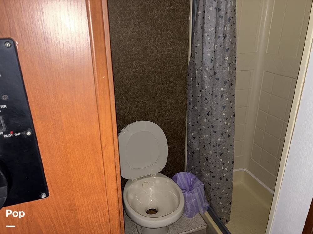 The rear bedroom has a comfortable queen bed with good storage, and the mid-bath includes a shower, toilet, and vanity. The kitchen is fully equipped with a 3-burner stove, oven, microwave, refrigerator, and pantry space. Outside, you get a power awning, multiple storage compartments, and a 5,000-lb tow hitch. With generous tank sizes and a compact, easy-handling footprint, this A.C.E. 29.2 is perfect for family trips or extended camping.