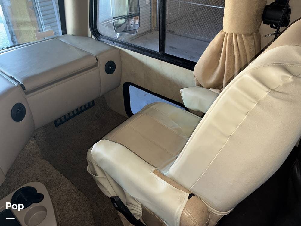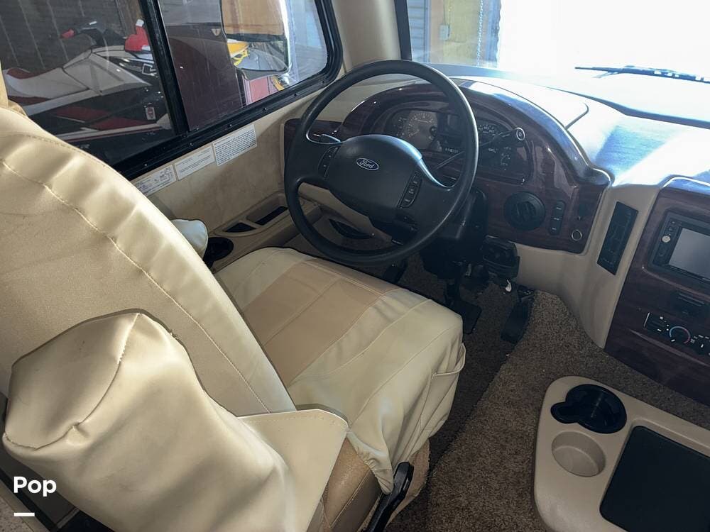 This 29-foot Class A motorhome is easy to drive and loaded with the features people want. It's built on a Ford chassis with the Triton V10 engine, offering plenty of power for long trips and towing. The full-wall slide really opens up the interior, giving you a spacious living area with a booth dinette, jackknife sofa, and an electric drop-down bunk for extra sleeping.