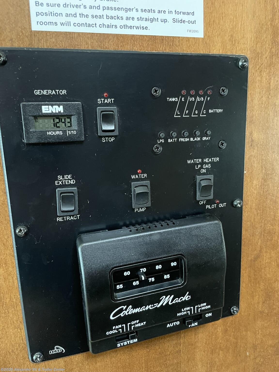 Backup Camera, CO Detector, Fire Extinguisher, LP Detector, Propane, Smoke Detector, TV, TV Antenna -