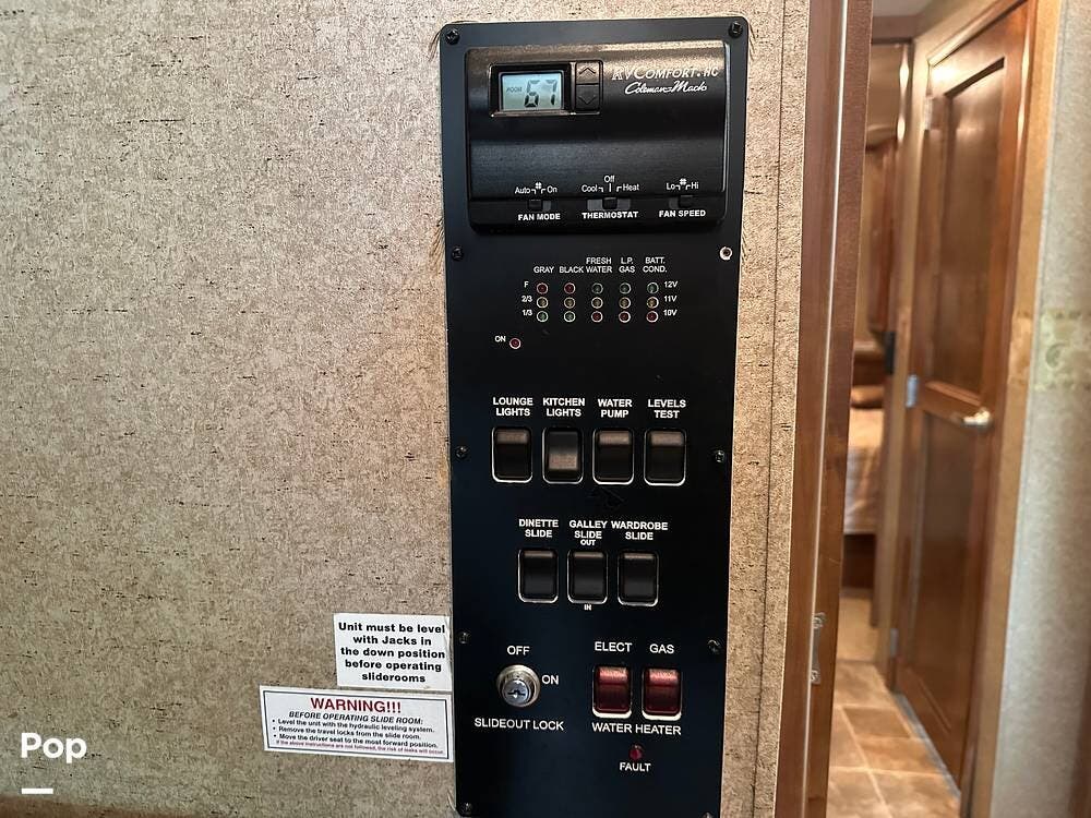 New engine battery, two new house batteries, new gate valves on waste tanks, 6 new tires, new power patio awning. Recently tuned-up Onan 5500-watt generator and new carburetor, auto generator start.