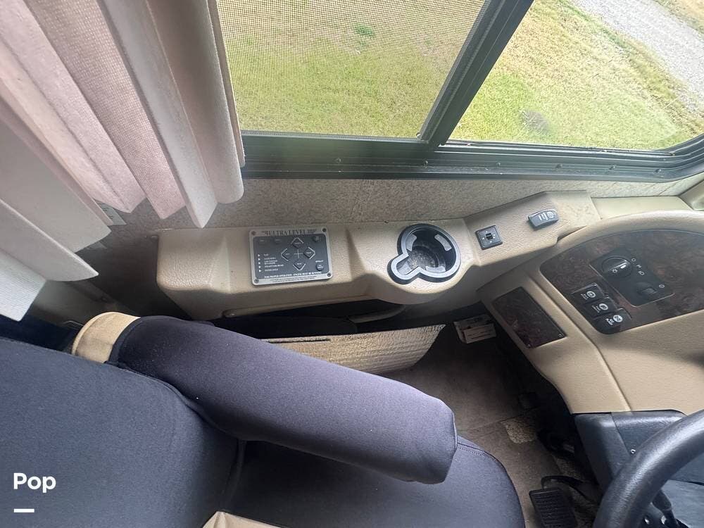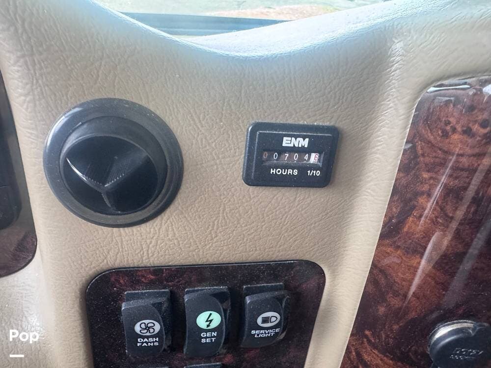 With three slide-outs, hydraulic auto-leveling jacks, dual roof air conditioners, and a Cummins 5,500-watt Onan generator with 705 hours of use, this coach is well-equipped for both travel days and extended stays.
