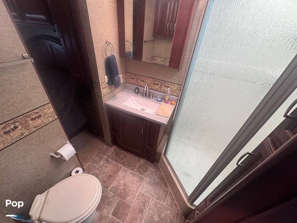 The bathroom offers a spacious, well-appointed setup with quality finishes, providing comfort and convenience wherever the road takes you.