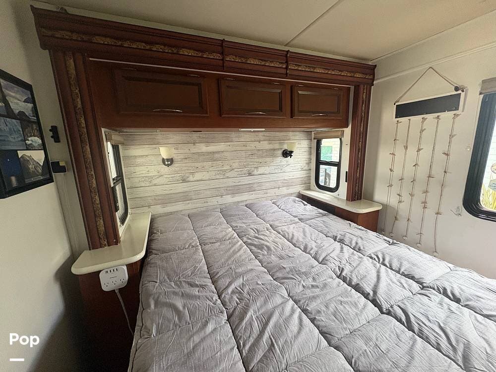 Inside, the double slide layout opens up to create an impressive living area. A private rear bedroom with a queen bed offers comfort at the end of the day, while the cab-over bed provides flexible sleeping and lounging options.