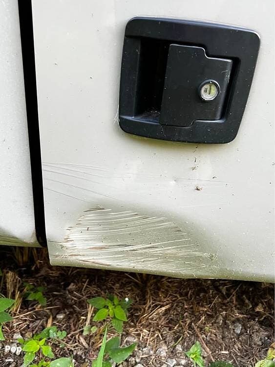 Amenity-wise, it comes with an Onan RV QG 3600 LP generator, a queen bed in the rear, a full size bathroom, and a convertible/stowable dinette table. She also has a convection microwave, a two-burner stove, a gas/electric refrigerator, a sound system with a CD/DVD player, 3 flat-panel TVs, as well as a roof access ladder, and a large patio awning to make your outdoor living more comfortable.