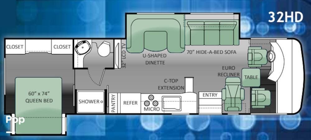 Built for those who want the freedom of the open road without sacrificing the comforts of home, this coach blends quality construction, smart design, and style in one impressive package. At just over 32 feet long, it's easy to drive and maneuver while still offering plenty of living space for long trips or weekend getaways.