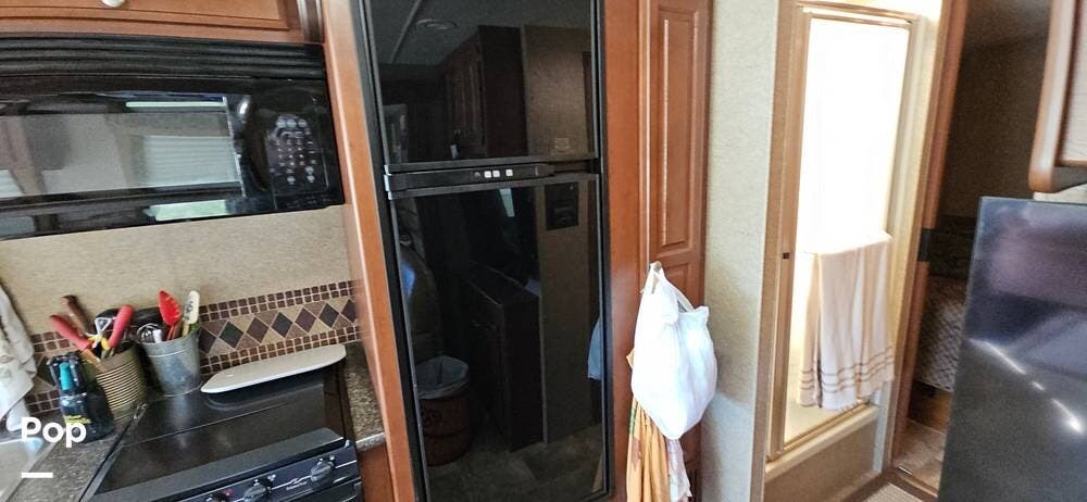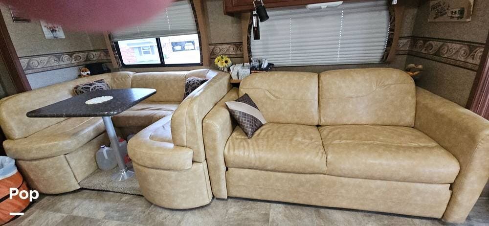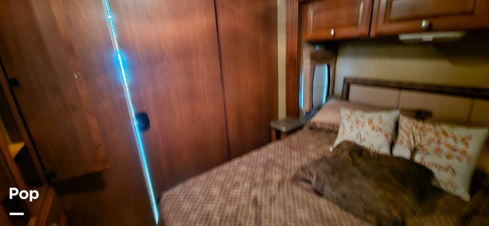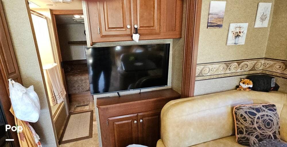 Inside, you'll find a warm, inviting interior with rich wood cabinetry, solid-surface countertops, and plush furnishings that make it feel like a true home on wheels. The open floor plan offers a large slide-out living area, a fully equipped kitchen, and a spacious rear bedroom with a comfortable queen bed. Whether you're cooking dinner, relaxing on the sofa, or watching your favorite movie, every inch of this motorhome was designed to make travel enjoyable and effortless.