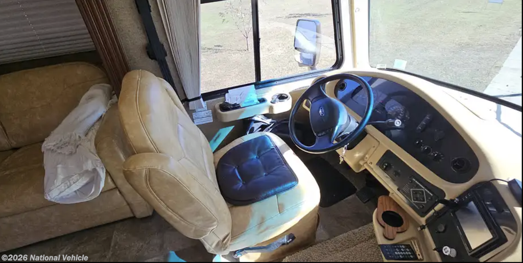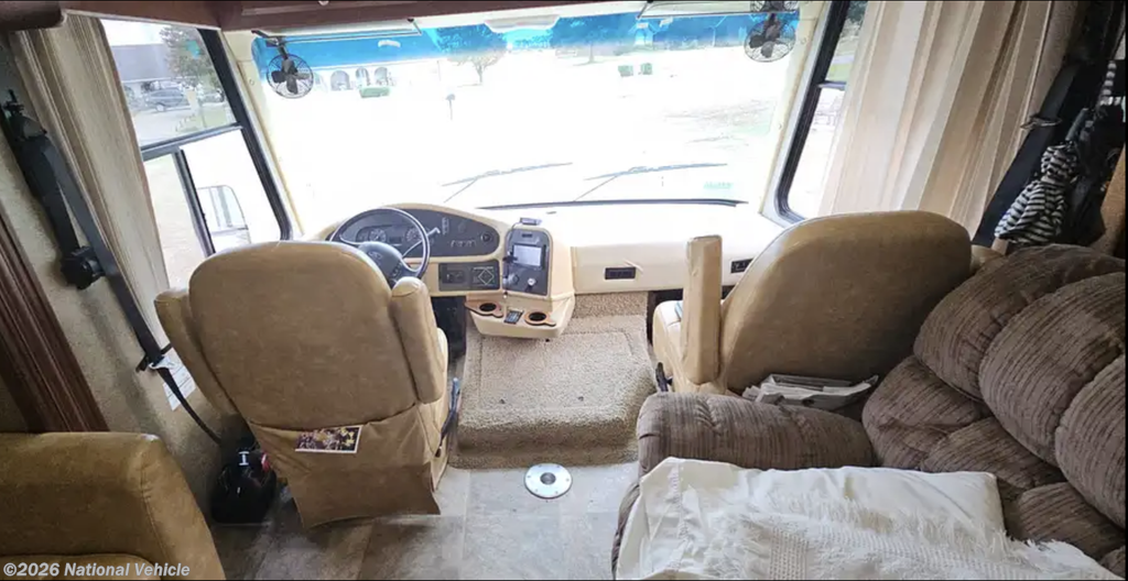 Comfort is a highlight with dual rooftop A/C units, including a brand new rear A/C, helping keep the entire coach cool during hot summer trips. The coach also has new house batteries and tires that were replaced about two years ago, adding peace of mind for the next owner.