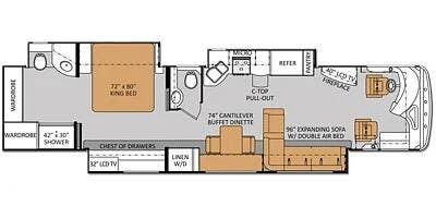 The three slide floorplan provides for very comfortable living. And there is great storage throughout the coach as well as outside in the basement area.
