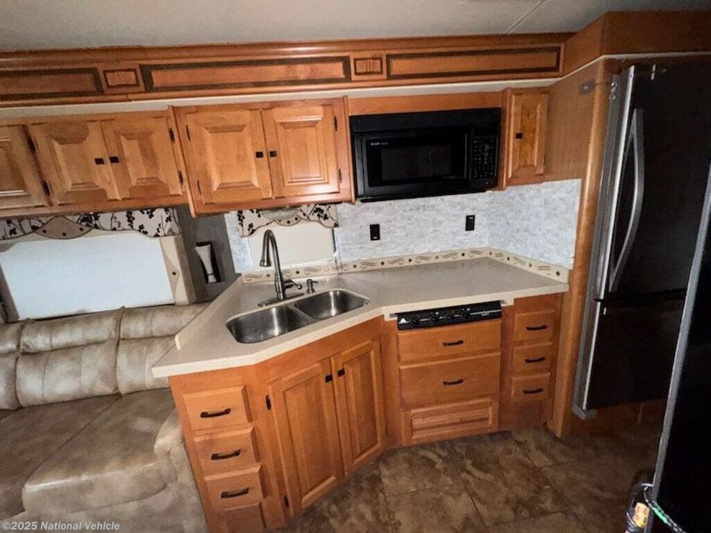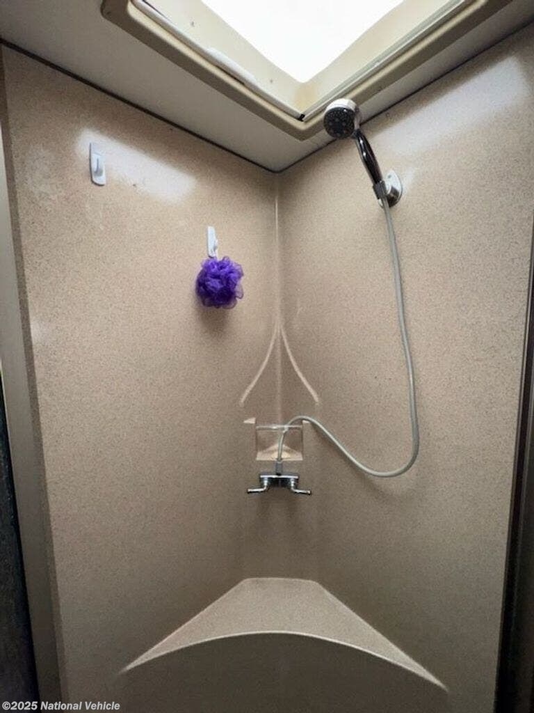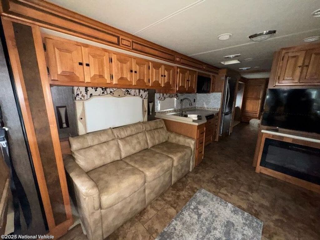 The well-equipped kitchen offers solid-surface countertops, a three-burner cooktop, microwave, refrigerator, and generous cabinet storage, making meal preparation easy whether you?re on a weekend trip or an extended journey. Everything is positioned for efficiency without sacrificing comfort.