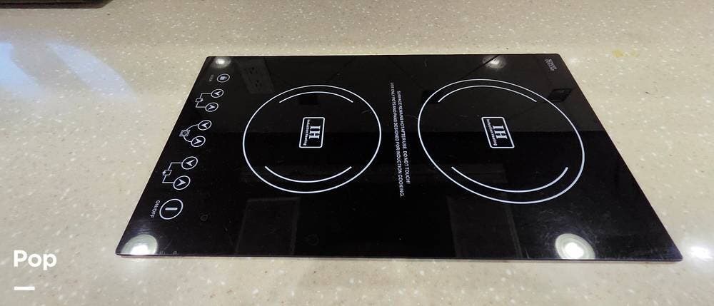 She's got a well-appointed kitchen with everything you'll need to whip up meals and store your food. There's a double kitchen sink, microwave convection oven, stove, and a residential-sized refrigerator.