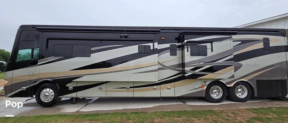 This luxurious coach is located in Farmersville, Texas. She's powered by a powerful 450 HP Cummins diesel engine with 167,518 miles. There's an Onan Quiet Diesel 10.0kW generator with 1,009 hours of use. She's also got a tag axle, which makes the coach extremely easy to drive and handle.