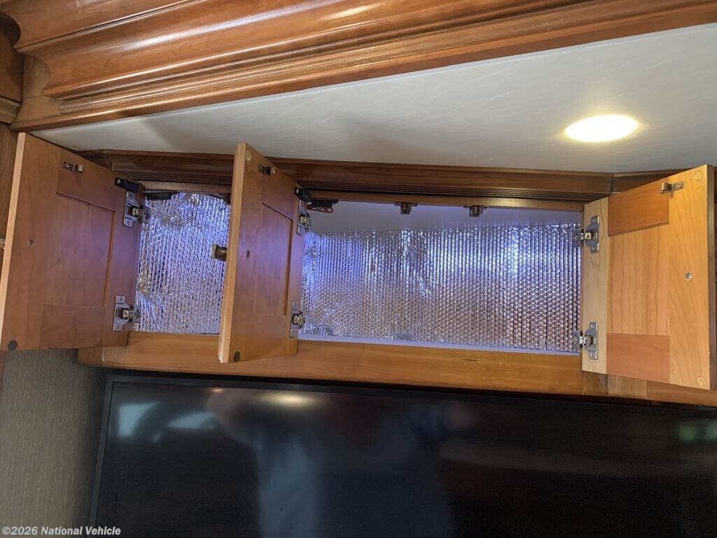 The spacious rear master suite features a king-size bed, creating a true retreat for restful nights on the road. Premium cabinetry throughout the coach has been professionally insulated, enhancing temperature control, reducing road noise, and elevating overall comfort in every season. This thoughtful upgrade sets this coach apart and contributes to a quieter, more energy-efficient living environment.